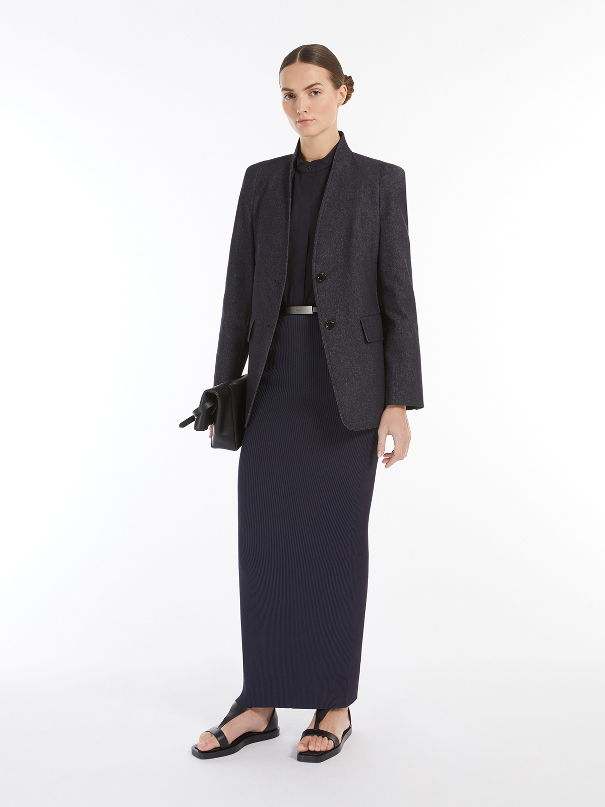 2025年春夏ミラノコレクションのランウェイモデル、マンダリンカラーシャツ。