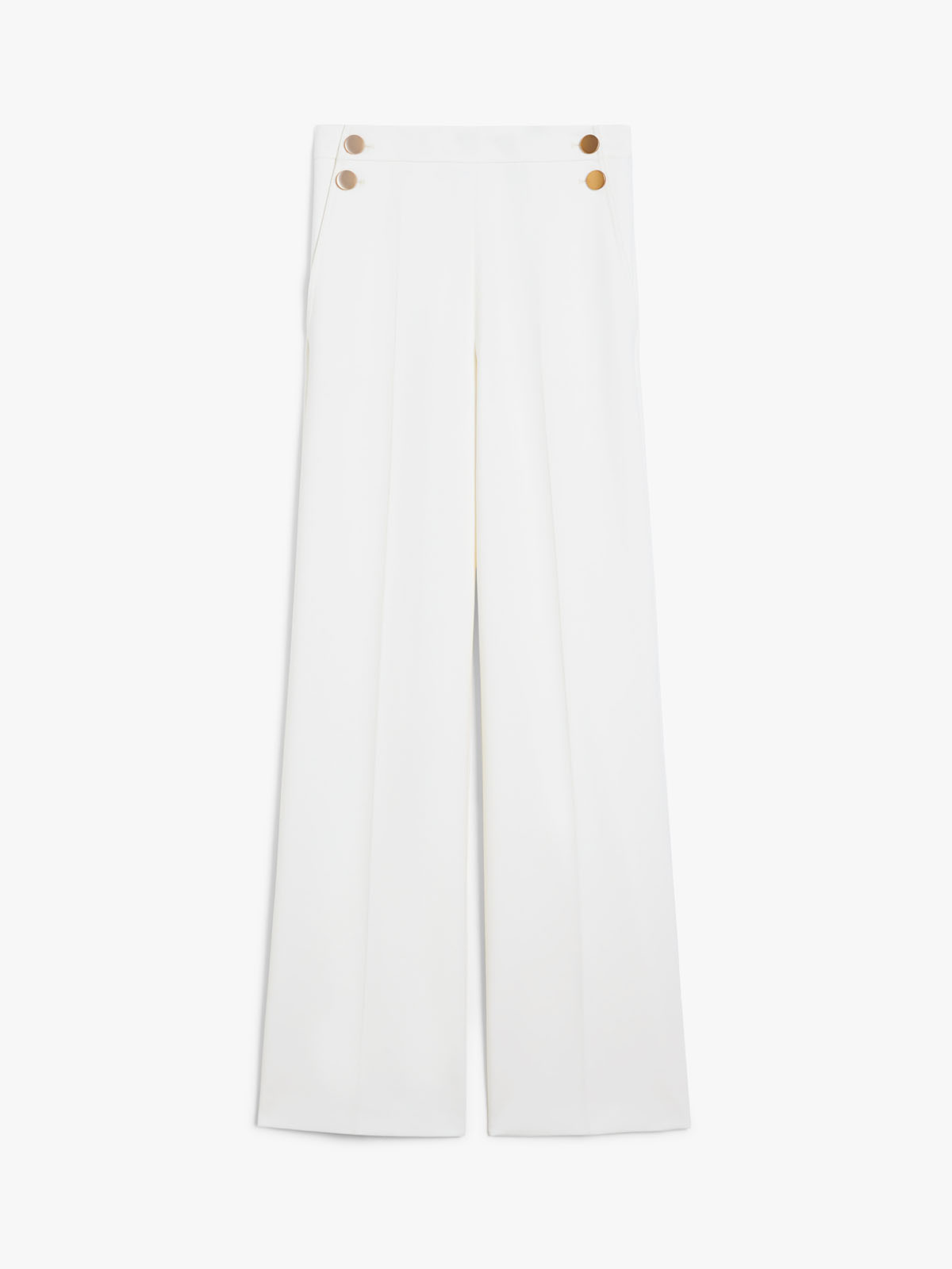 サイドにあしらわれたゴールドのメタルボタンが目を引くパンツ。