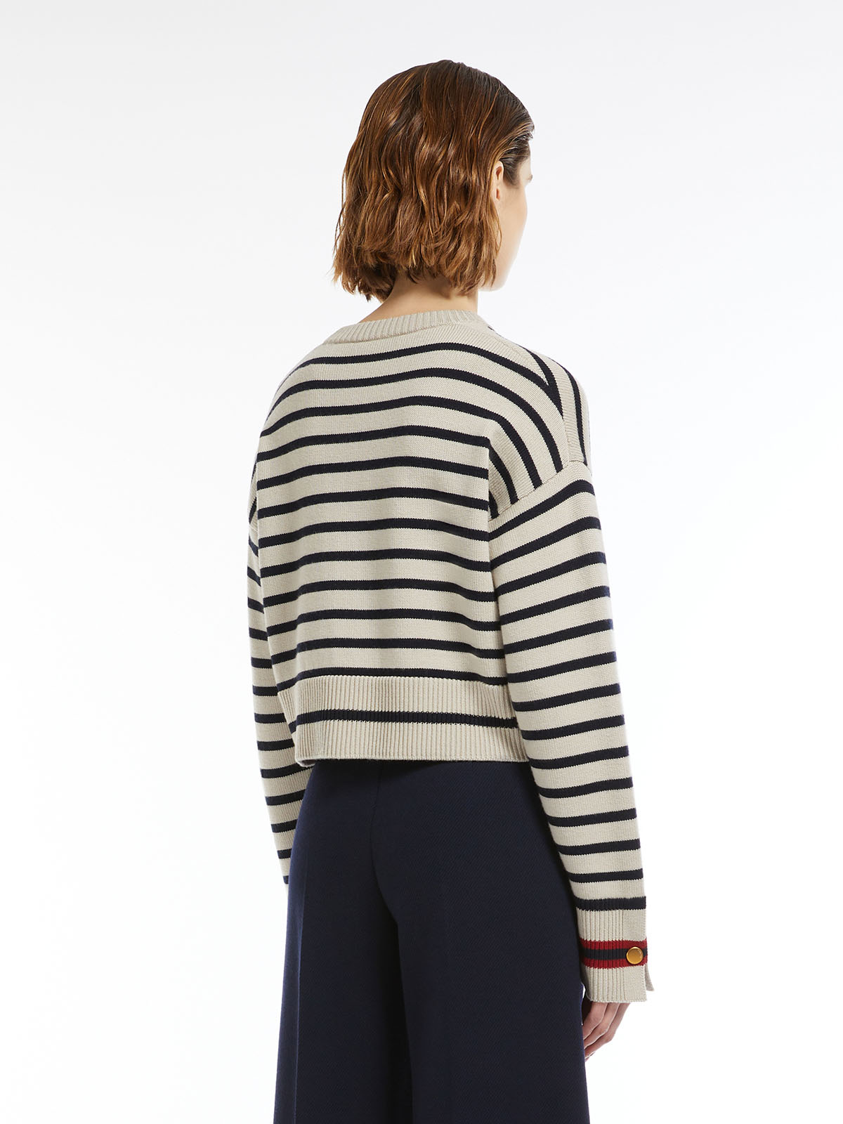 袖口はカラーの違うラインにゴールドのカフスボタン、小さなスリットをあしらいました。