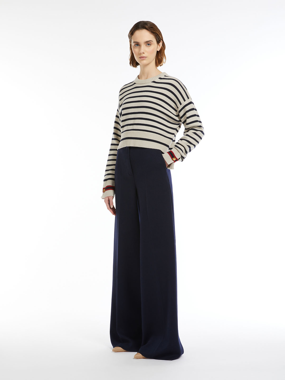 合わせやすい着丈のニットは、パンツにもスカートにも相性がよくコーディネートの幅が広がります。
