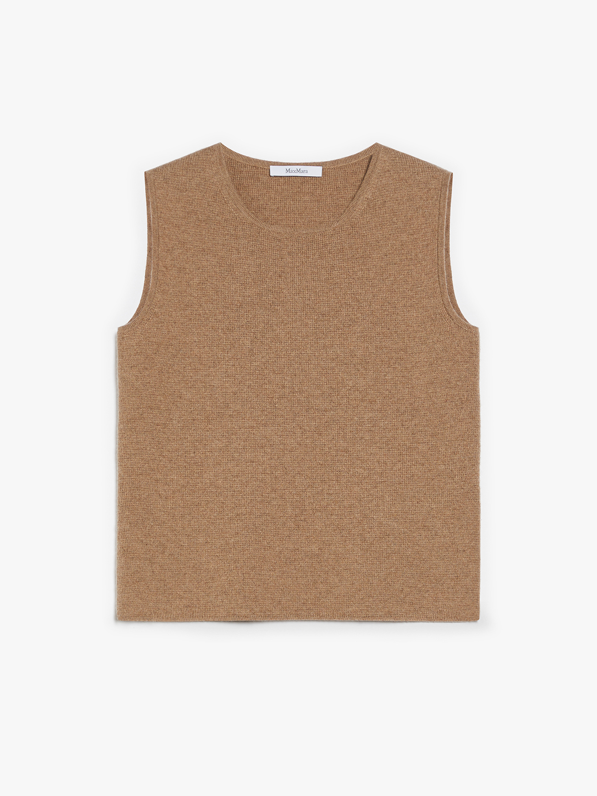 シンプルなデザインが魅力のノースリーブニット。