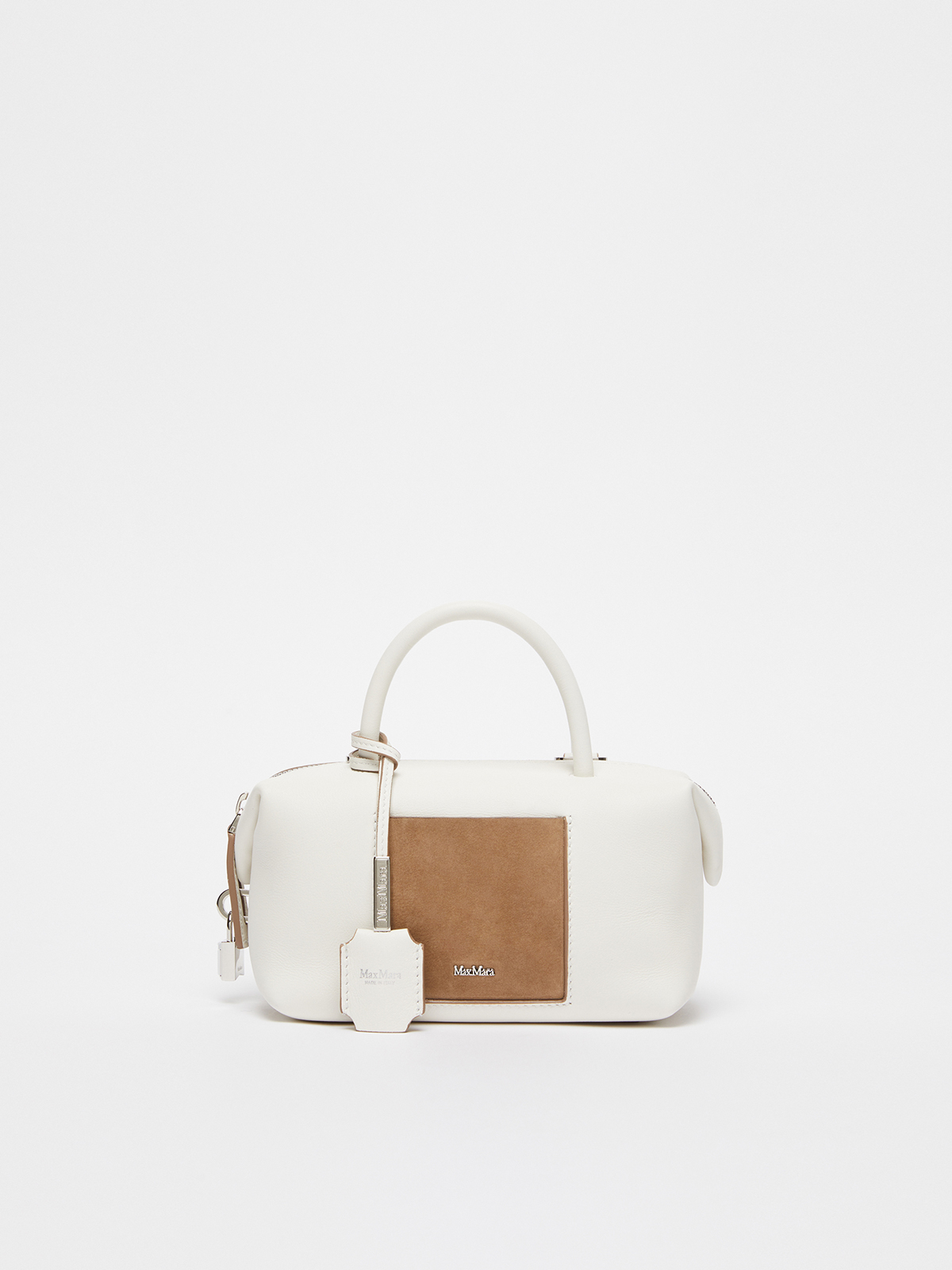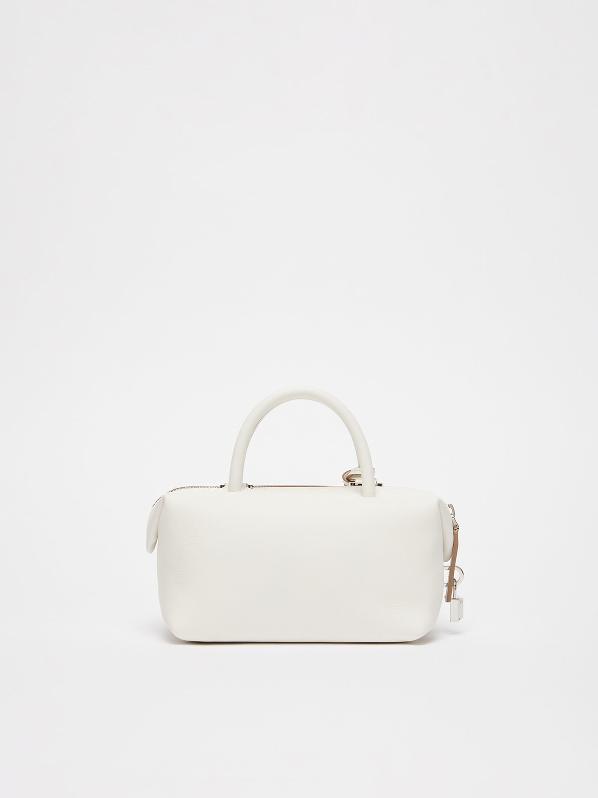 ワックス仕上げのソフトで滑らかなカーフレザーを使用したダブルハンドルバッグ。