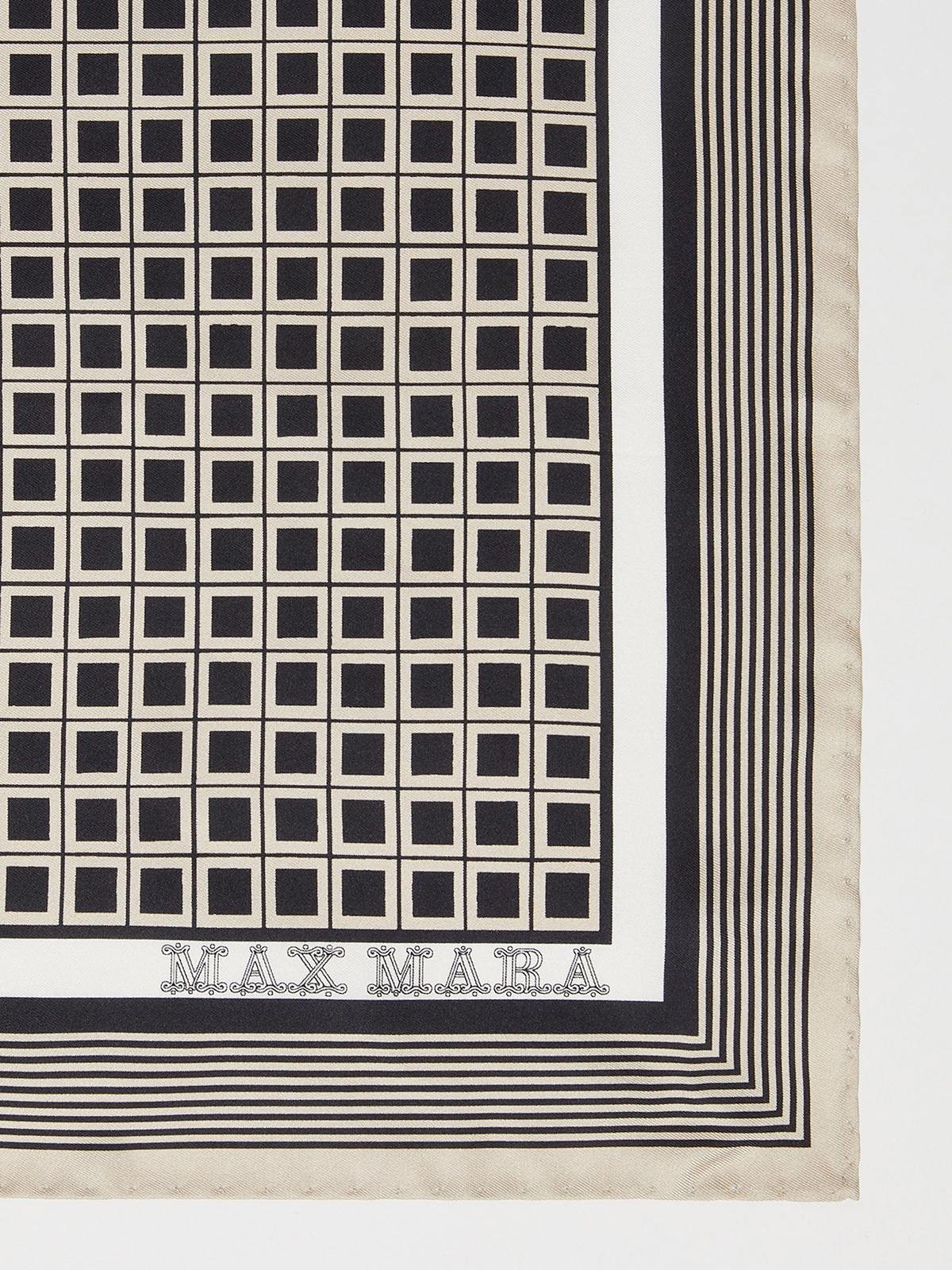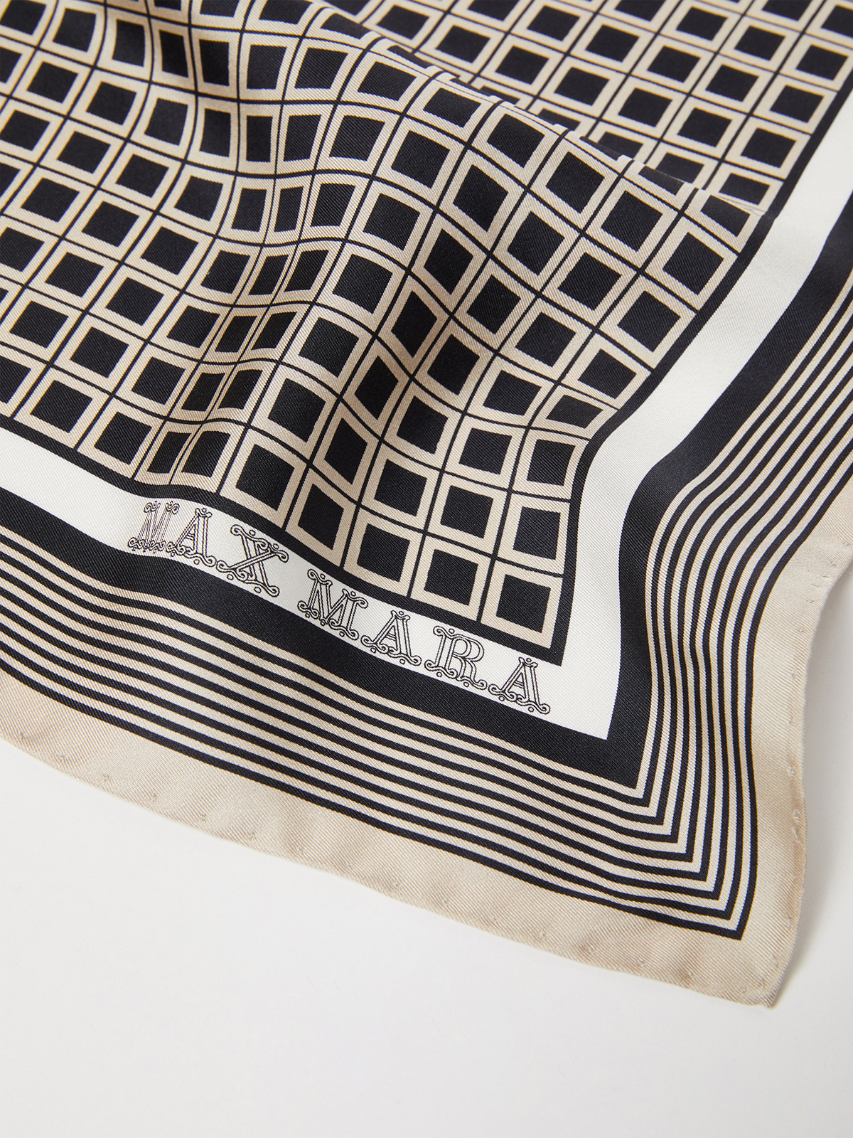 格子柄やストライプ柄を並べた幾何学模様が特徴的なプリントスカーフ。 上品な光沢感と手触りの良い質感が魅力のシルク素材でお作りしました。 ポケットチーフやバッグアレンジなど幅広いシーンに華やかさをプラス。 スタイリングに馴染みやすいカラーリングで、ファッションの小物アクセントとして重宝するおすすめのアイテムです。