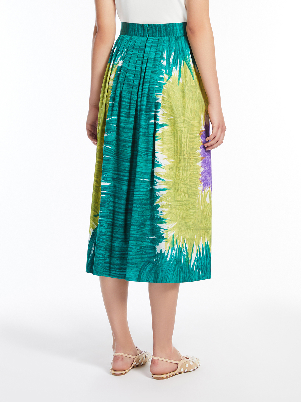 地中海の夏とパリのエレガンスにインスパイアされたプリントは、夏のスタイルを引き立ててくれます。 薄手のコットンポプリン生地を使用し、盛夏にも爽やかな着用感。 ボリュームのあるプリーツが動くたびに揺れ、フェミニンで軽やかな印象に仕上げます。 <ポケット>サイドポケット <スタイル>バックファスナー仕様