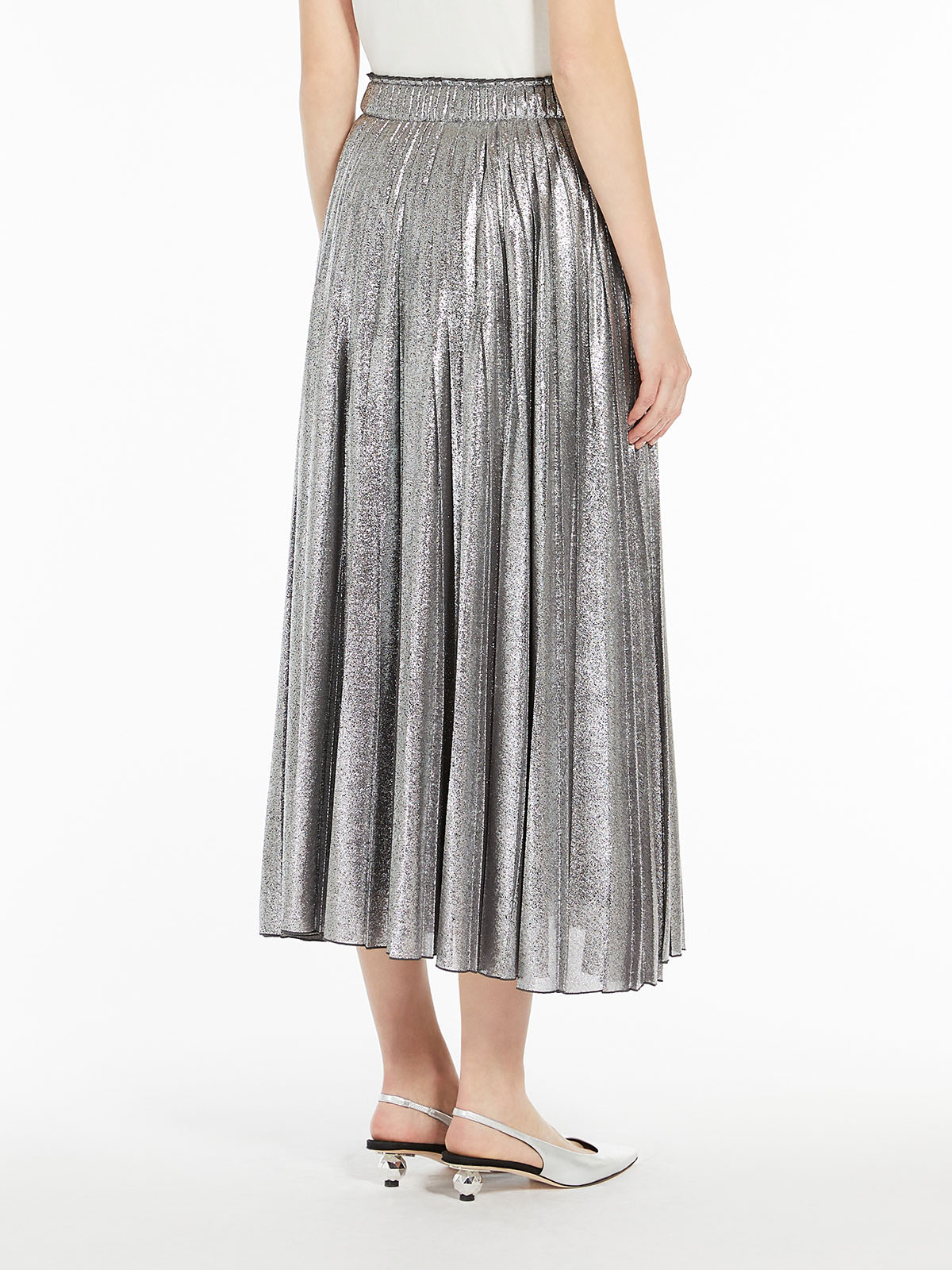 シルバーカラーが華やかでスタイリッシュな印象のロングスカート。