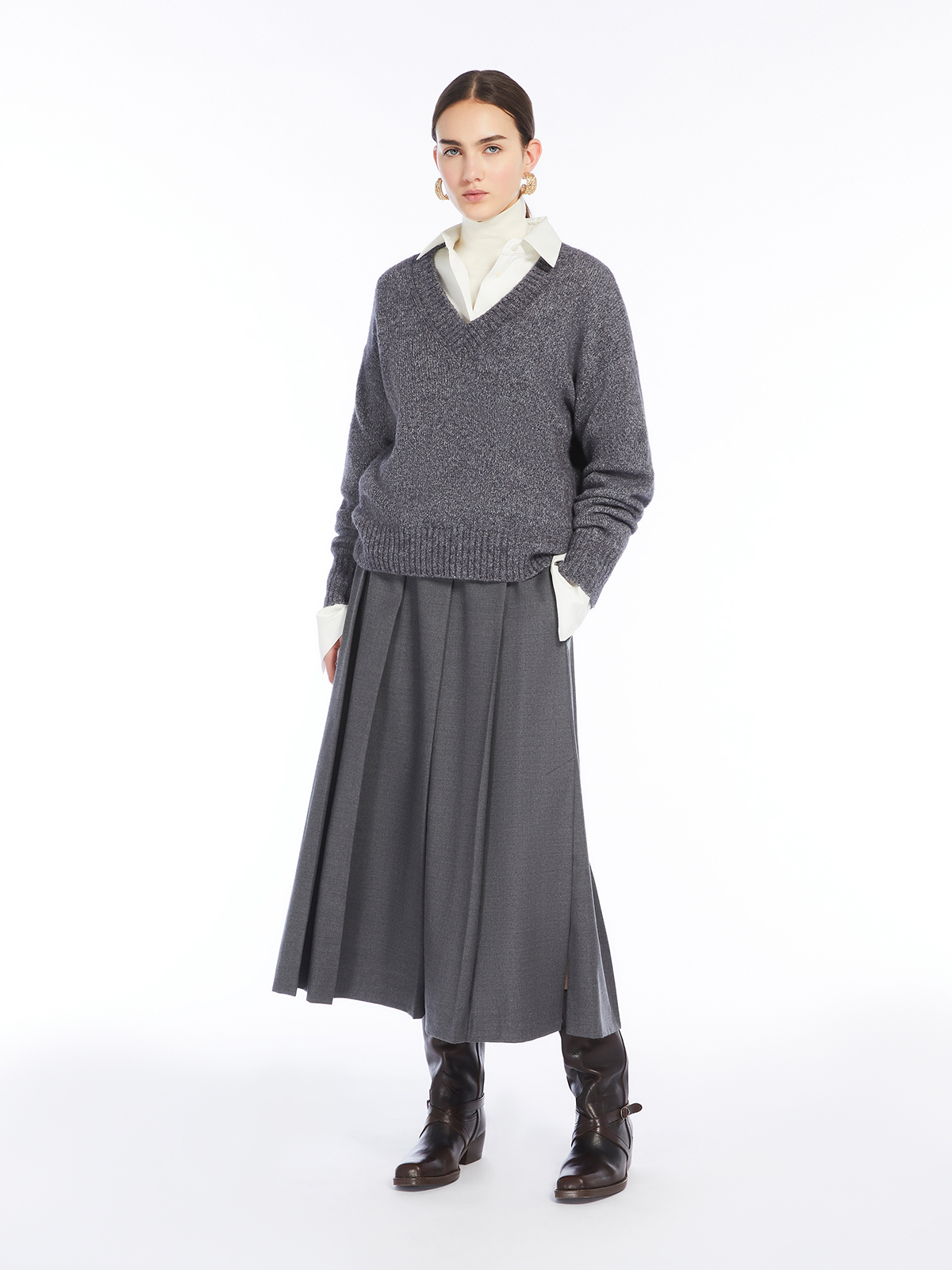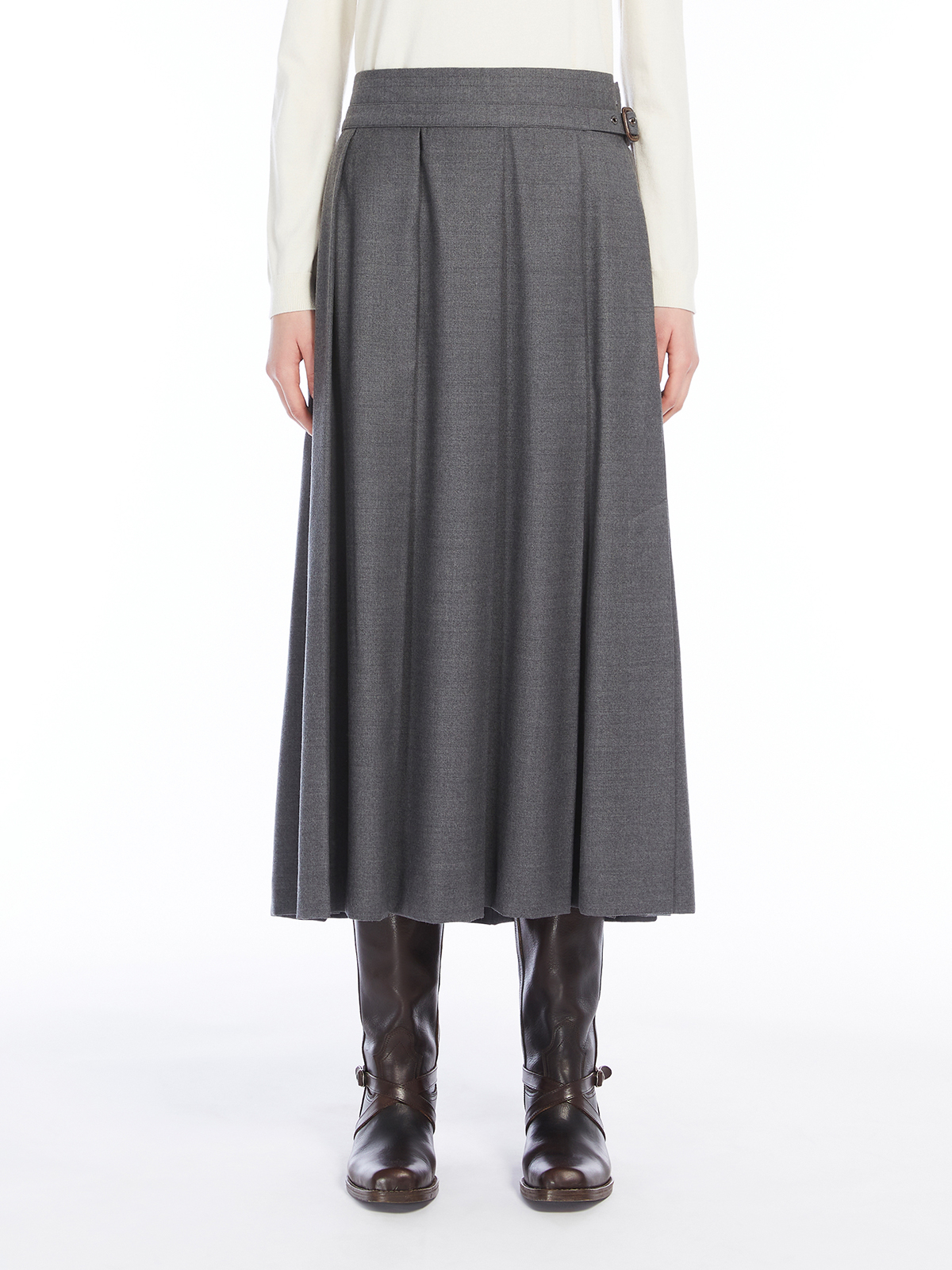 暖かみのある風合いのウールフランネルを使用したプリーツスカート。