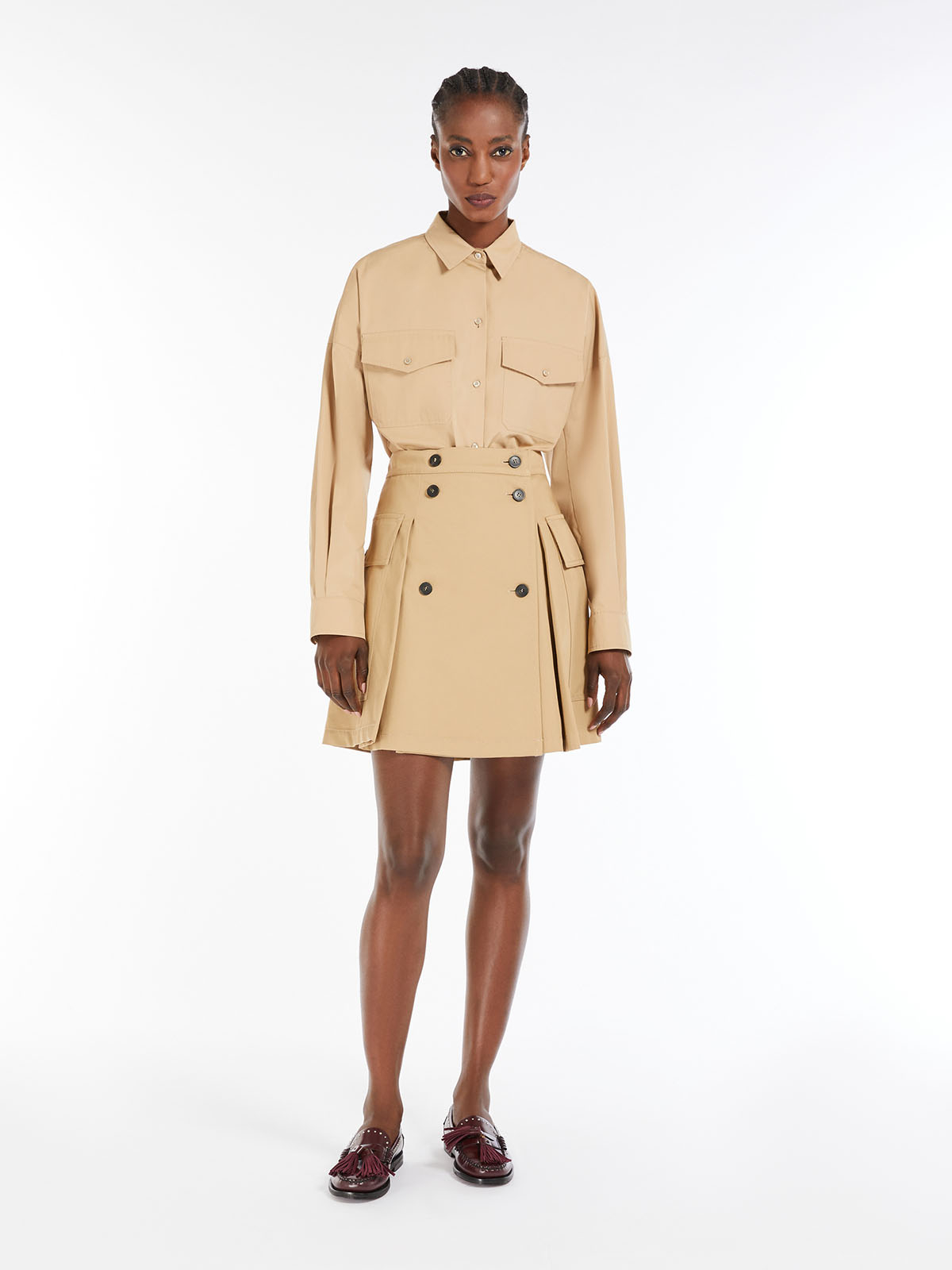 厚手のピュアコットンポプリンを使用し、しっかりとした生地感で美しいシルエットを生み出します。