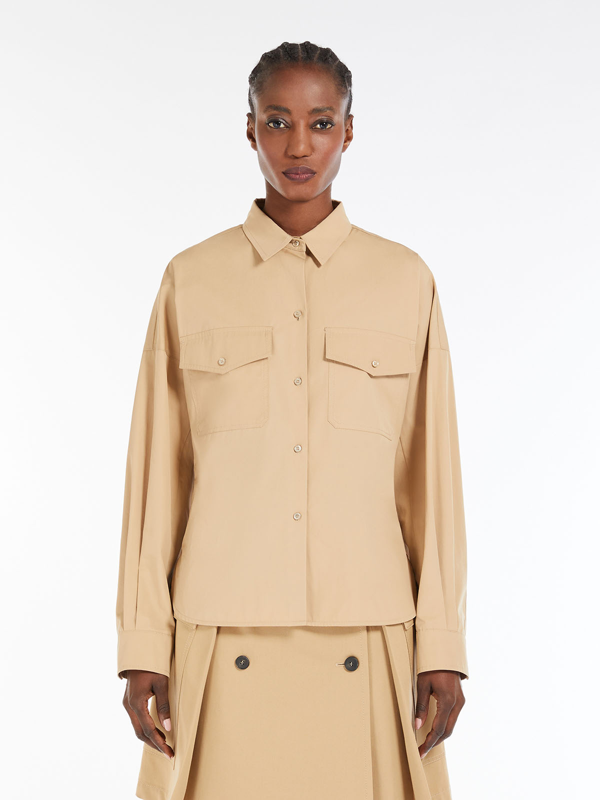 フロントにあしらったフラップポケットが目を引くコットンポプリンシャツ。