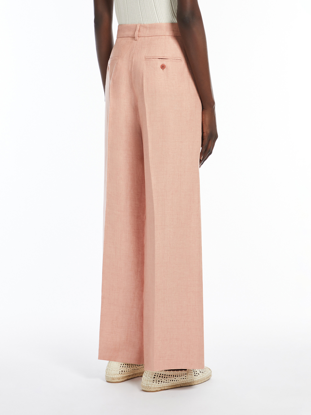 ピュアリネンキャンバスを使用したワイドレッグパンツ。