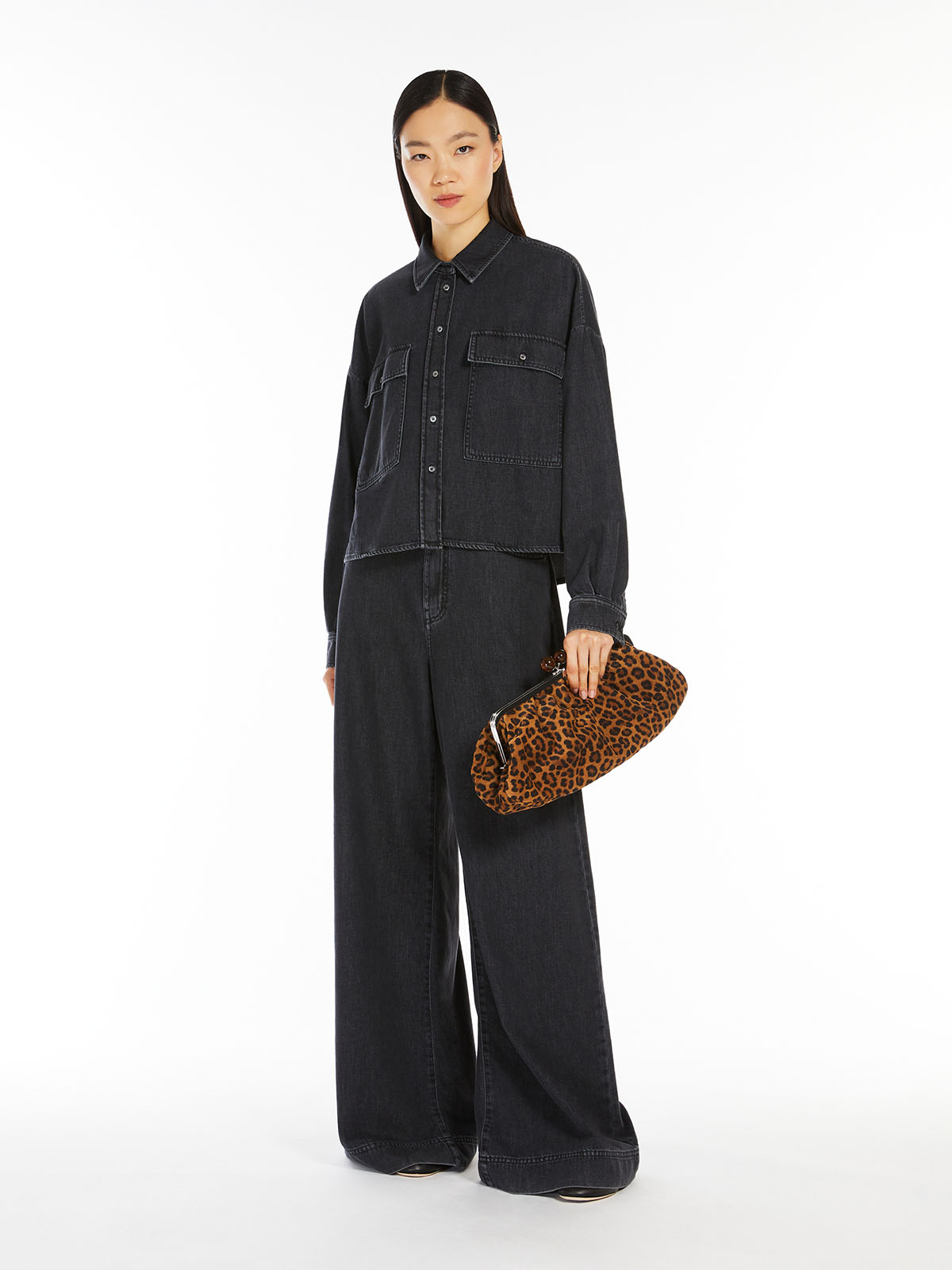 カーフスエードにアニマル柄の斑点模様をプリントし、トレンド感のある装いを演出します。
