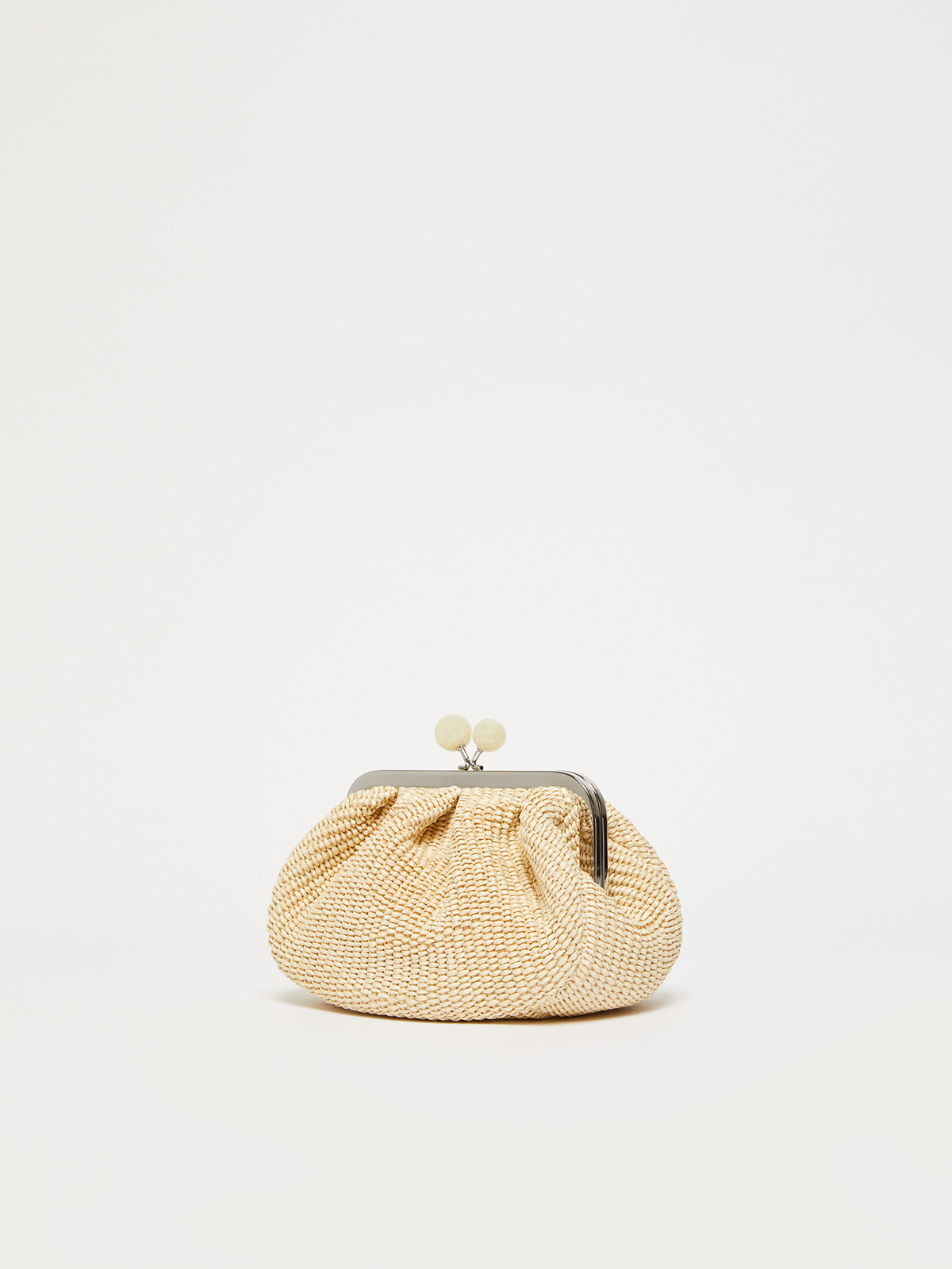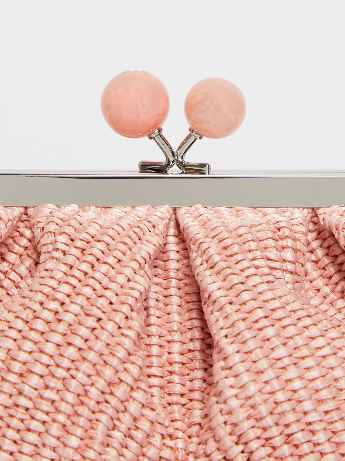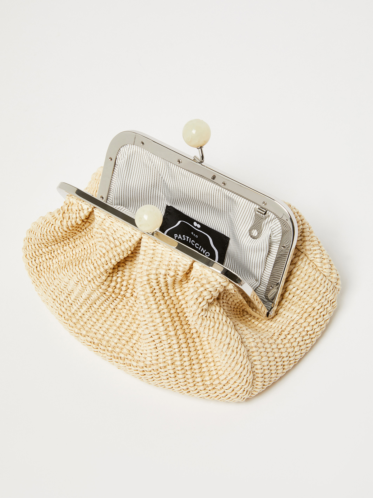 春夏シーズンにぴったりなラフィア風の生地に、ベースに合わせたカラーリングのボールクラスプが特徴的です。
