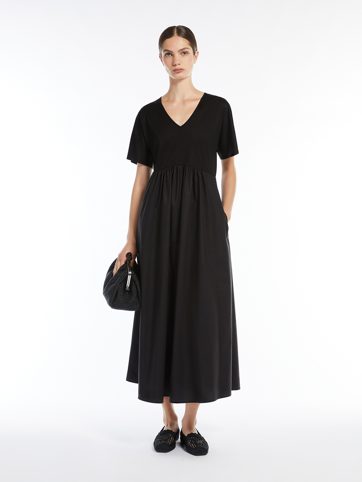 ソフトな肌触りのコットンジャージーのトップスと、程よく張り感のあるコットンポプリンのロングスカートを組み合わせ軽やかな着用感に仕上げました。