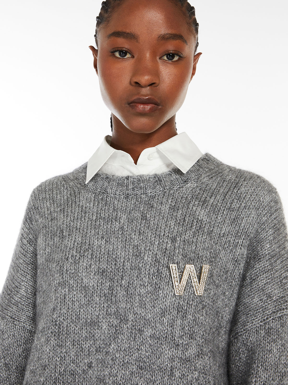 様々なサイズのクリスタルをあしらったエナメルとメタルのブローチセット。WEEKEND MAX MARAのアイコニックな「W」のロゴモチーフに、様々なサイズのクリスタルをあしらったメタルのブローチ。ニットやトップスだけではなく、シンプルなストールやバッグにも華やかなアクセントをプラスしてくれるアイテムです。