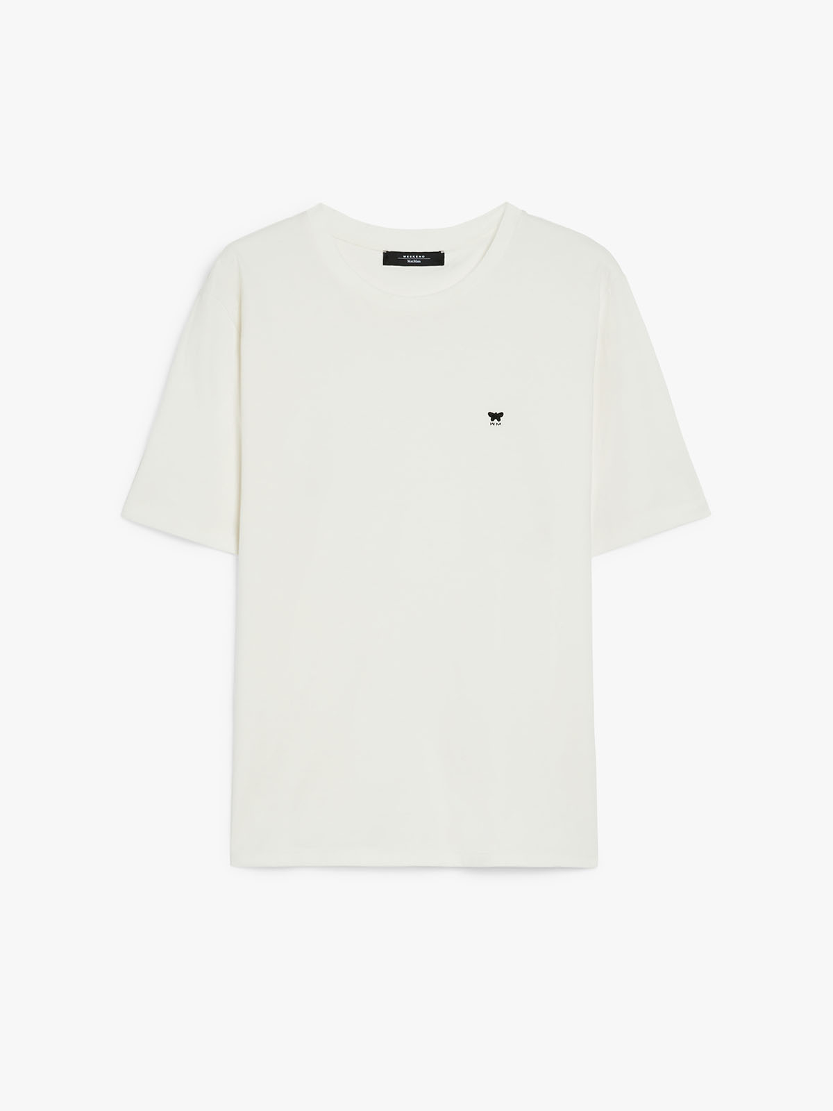胸元にWEEKEND MAX MARAのアイコン、バタフライモチーフの刺繍をあしらったシンプルなクルーネックTシャツ。