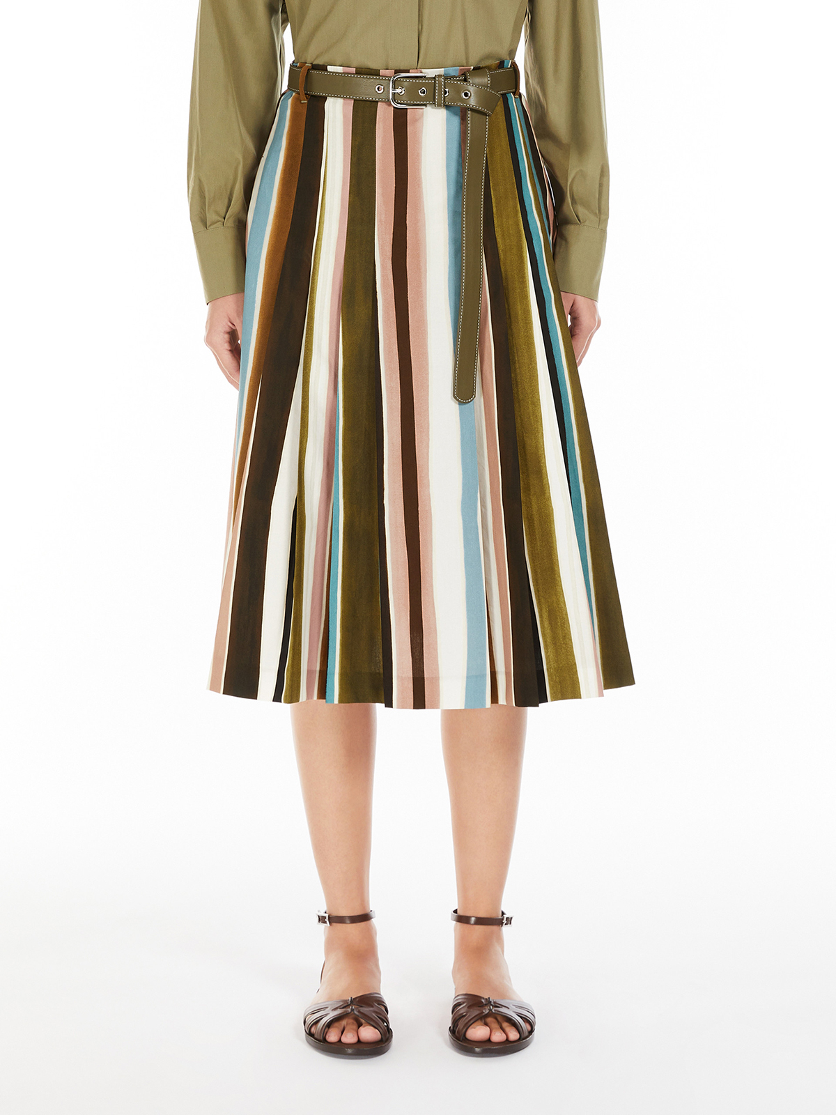 シルエットは、プリーツをあしらったフレアライン。