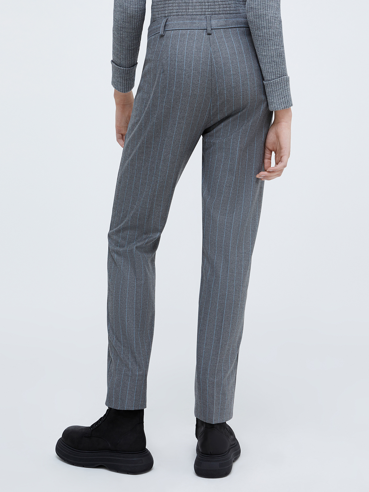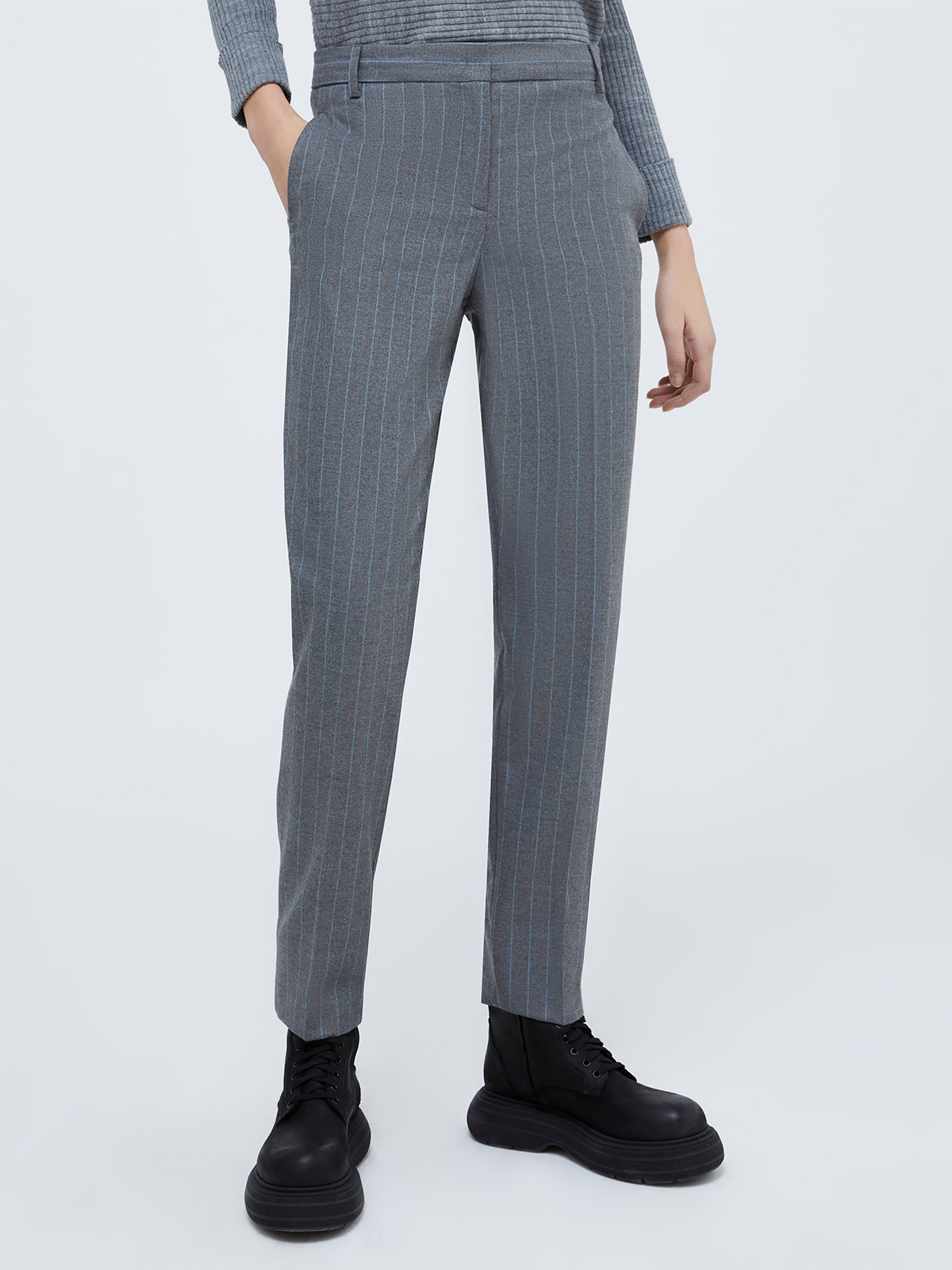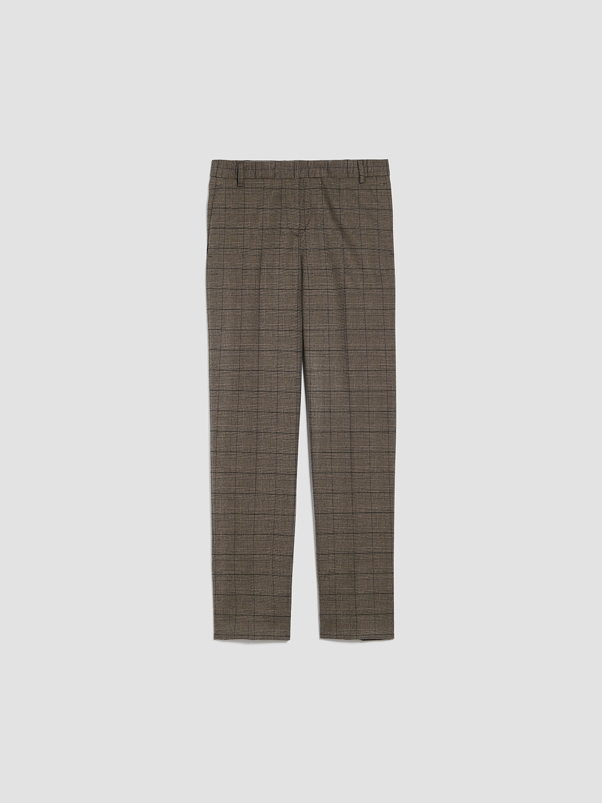 先染めされた繊維から作られた織柄フランネルスリムパンツ。
