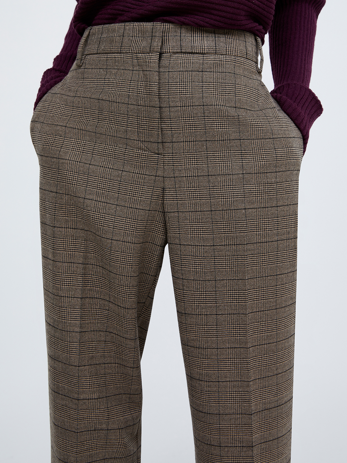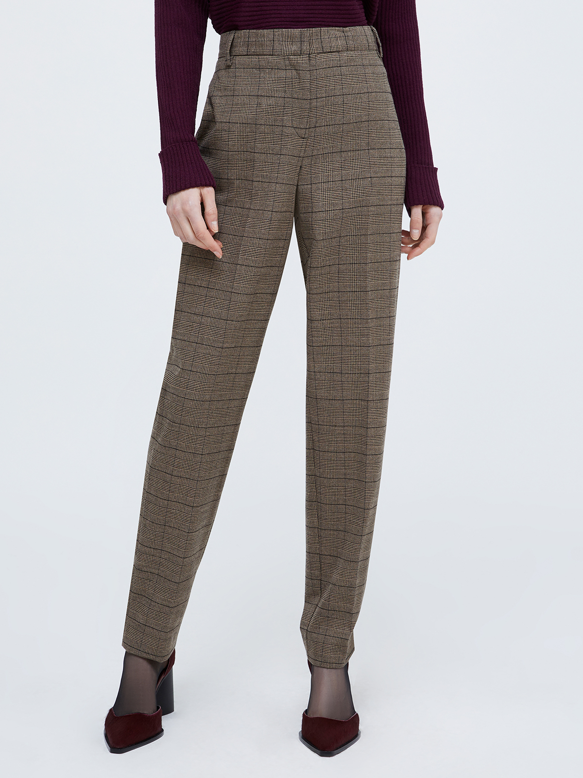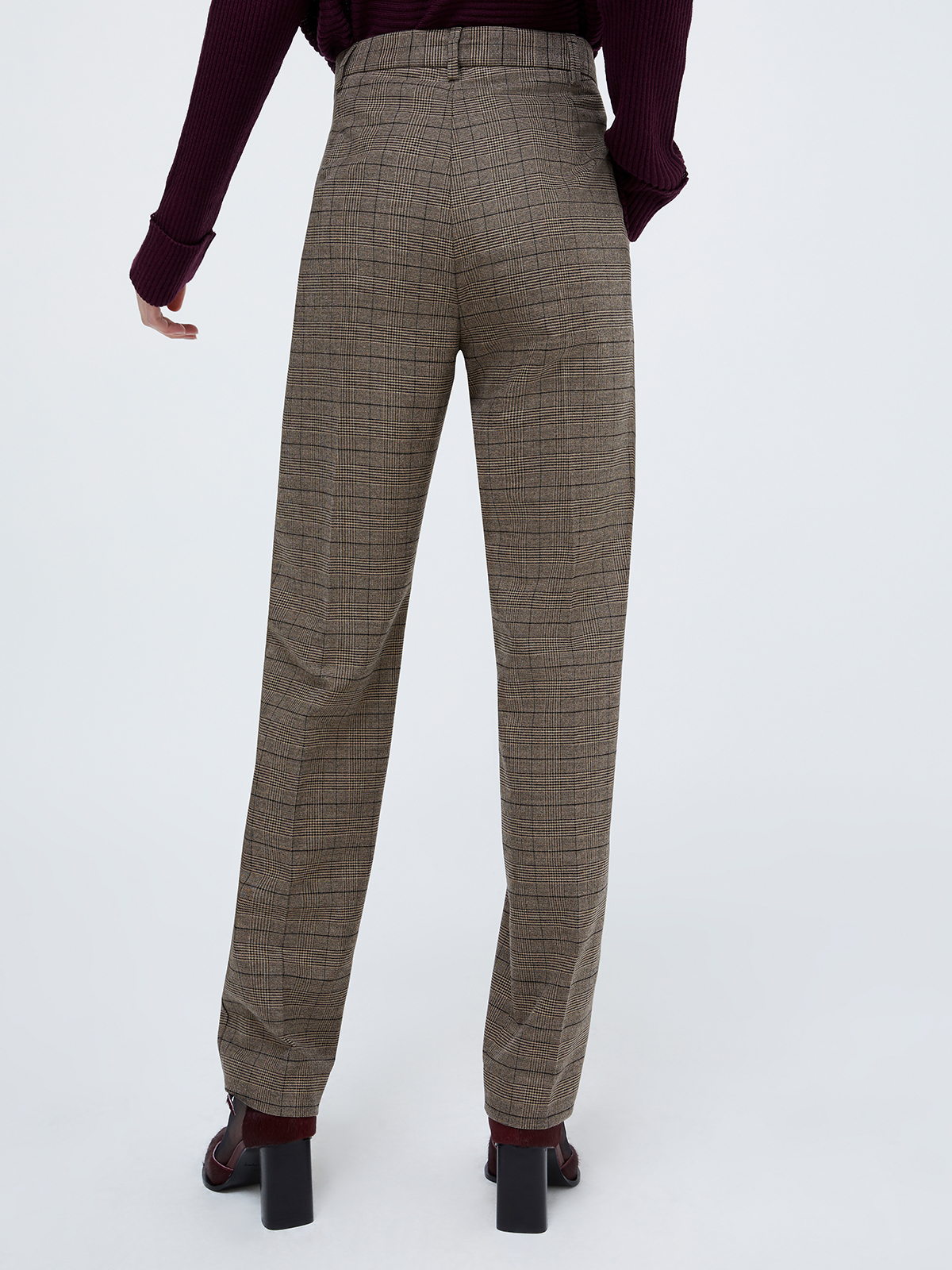 先染めされた繊維から作られた織柄フランネルスリムパンツ。