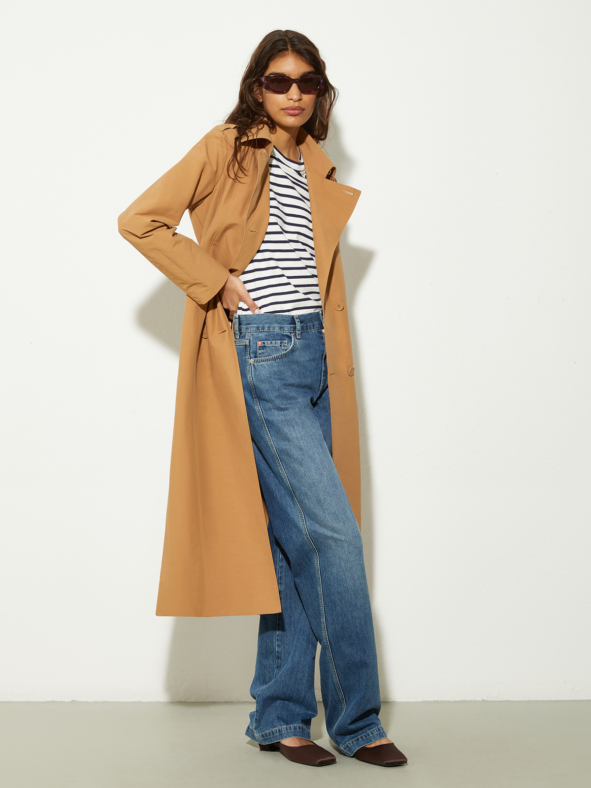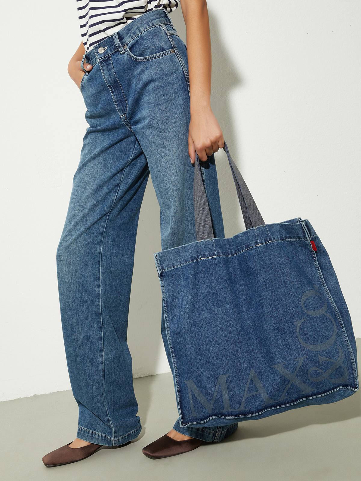 グレーのトップステッチとバックにMAX&Co.のエンブレムをあしらったレザーパッチがアクセントに。