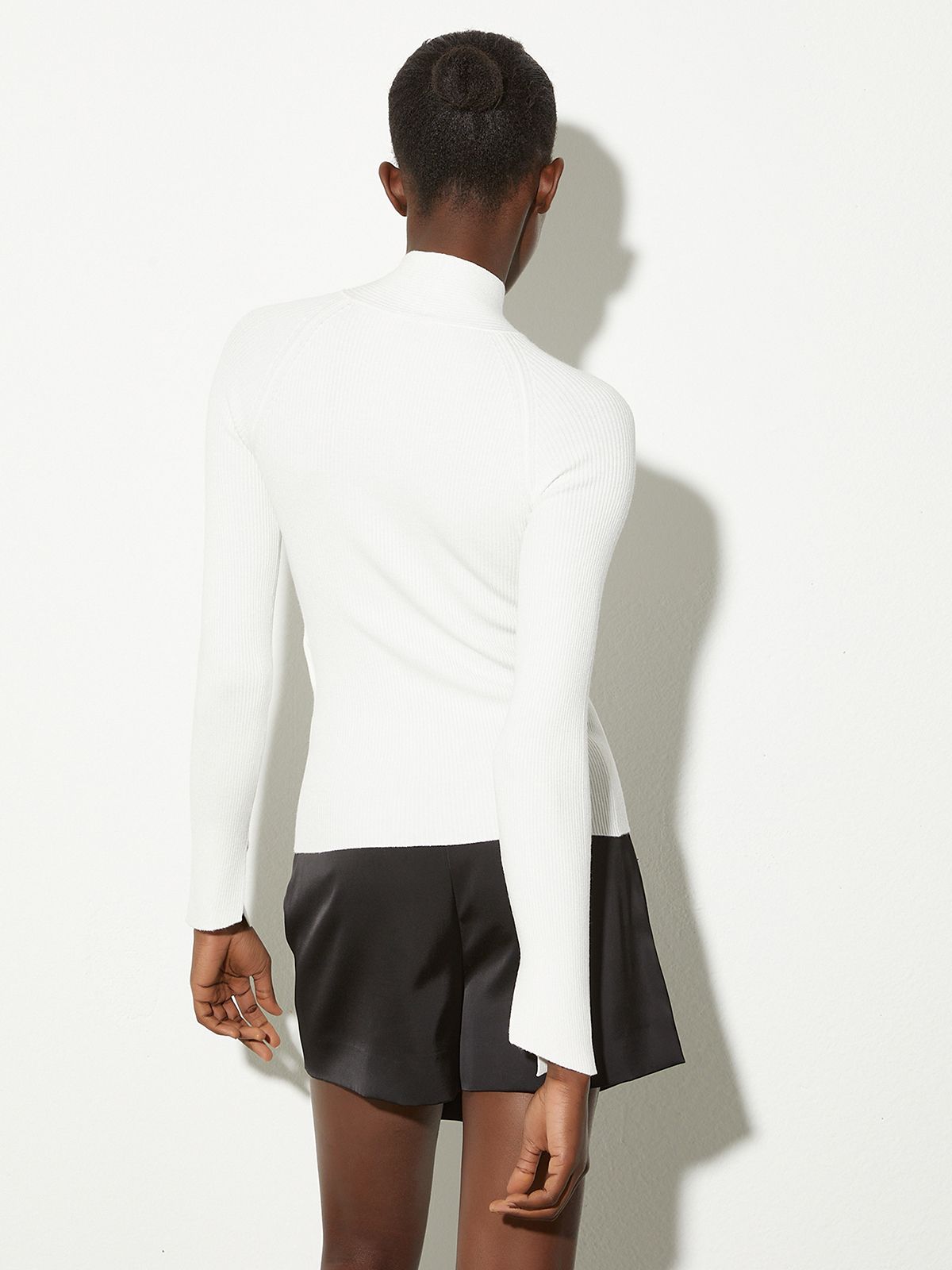 コンパクトなラグランスリーブに袖口にスリットをあしらいさりげないアクセントに。
