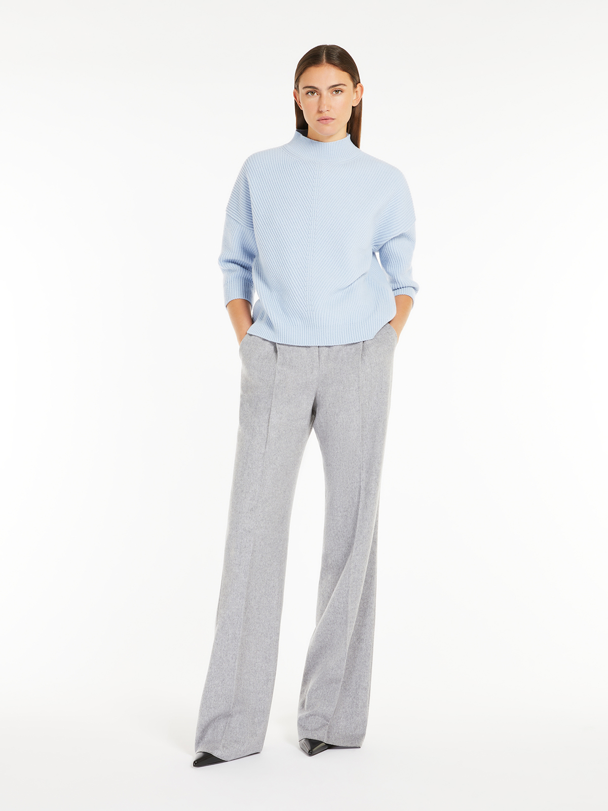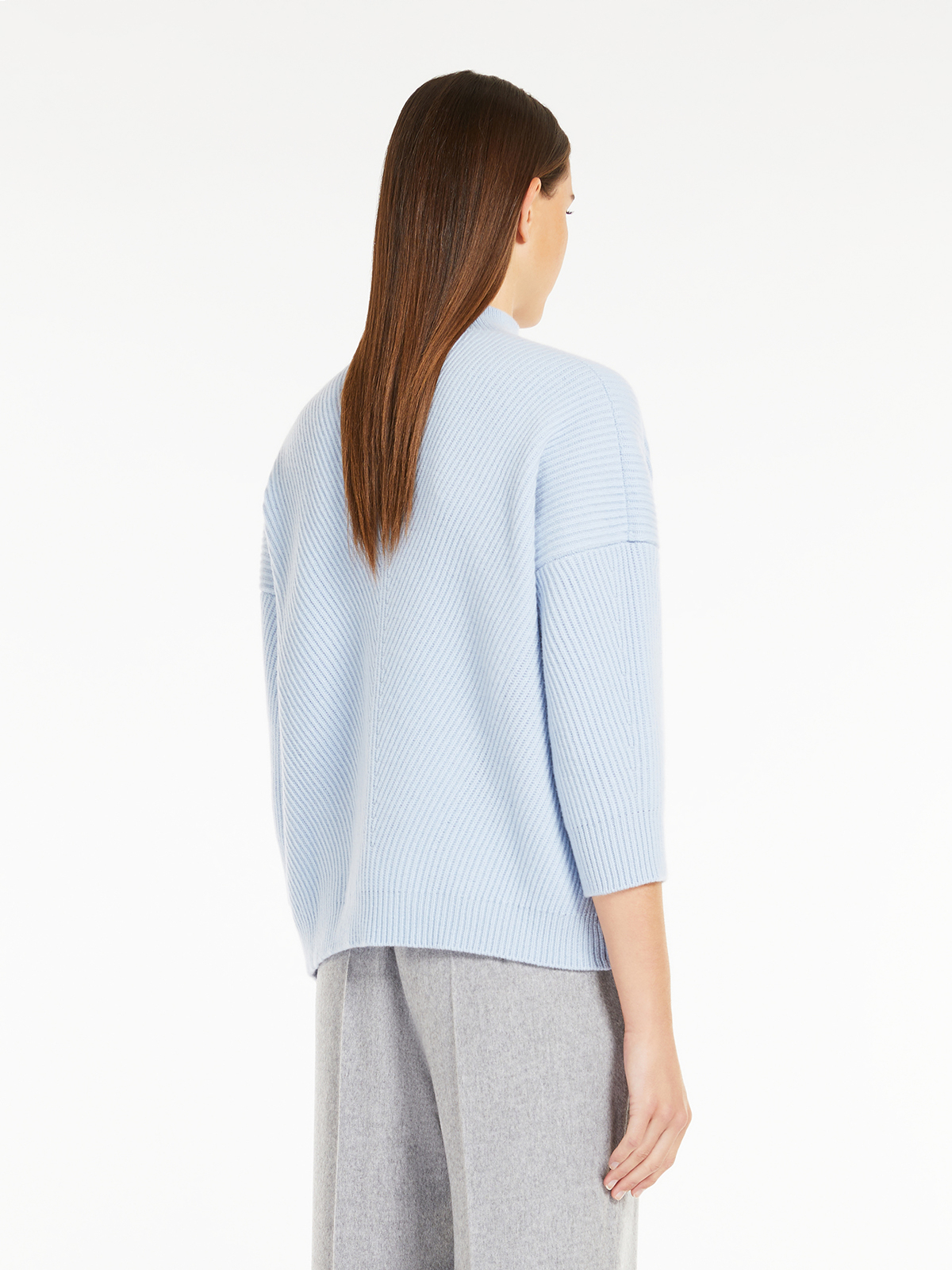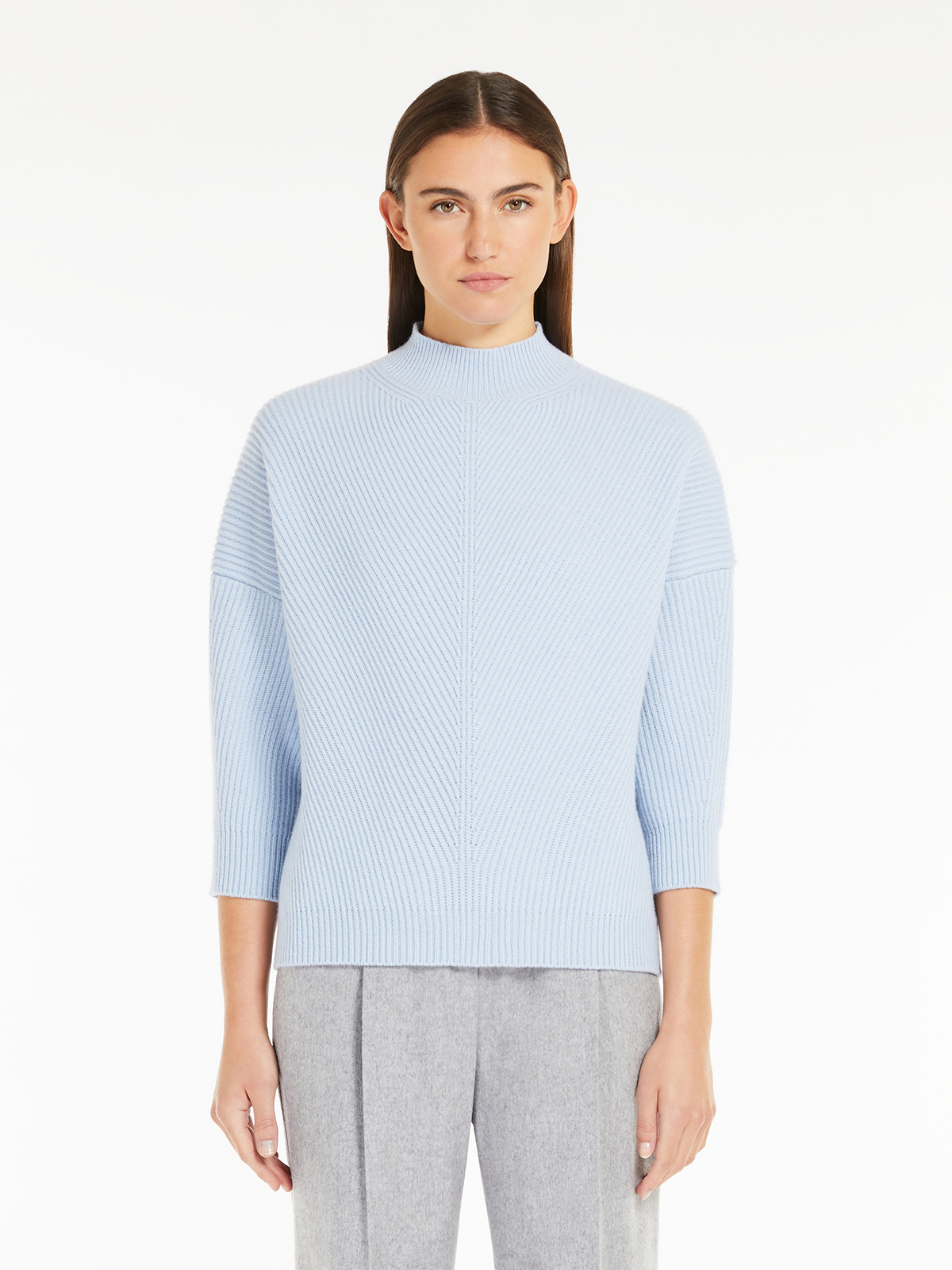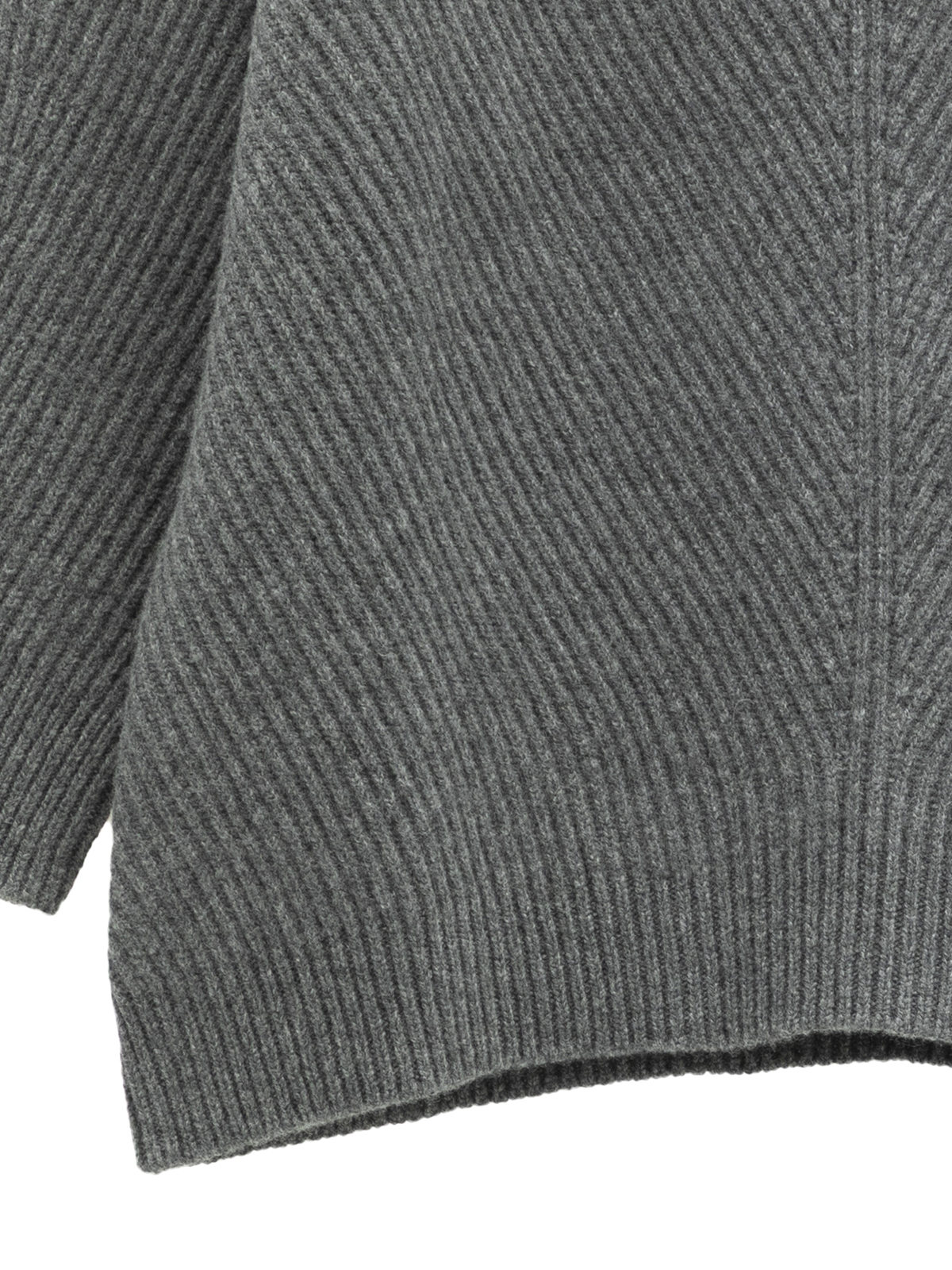 ヘリンボーン風の編み方が特徴的なニット。ウールとカシミヤがブレンドされたニットは、非常に肌触りが良く柔らかな質感に仕上がっています。シルエットは高めのネックに七分袖。ドロップショルダーがリラックス感をプラスします。スカートからパンツまで幅広いアイテムと合わせて着こなしいただけます。<ポケット>なし<スタイル>七分袖