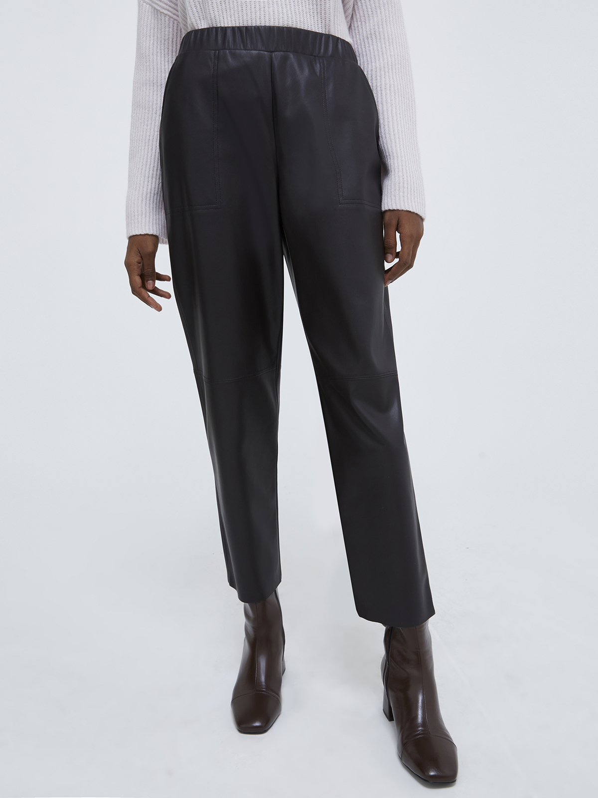 コーティング加工を施したジャージー素材を使用したベストセラーのジャージーパンツが再登場。内側には毛足のあるプラッシュ素材を使用し、軽やかさと暖かさを兼ね備えコンフォートな着用感です。伸縮性のあるゴムバンドのウエストに、ゆったりとした程よいテーパードフィット。すっきりとしたクロップドレングスで、ヒールにもスニーカーにも最適なシルエットに仕上げました。<ポケット>サイドポケット<スタイル>ゴムバンド仕様