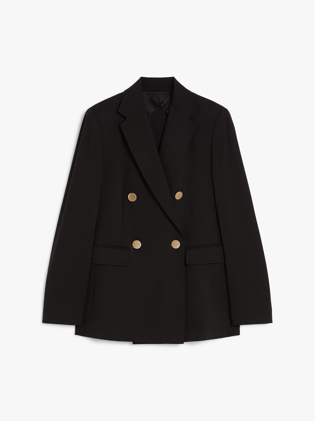 シルエットはラペルカラーのダブルブレスト。程よくウエストラインにフィットし、フェミニンな印象に。