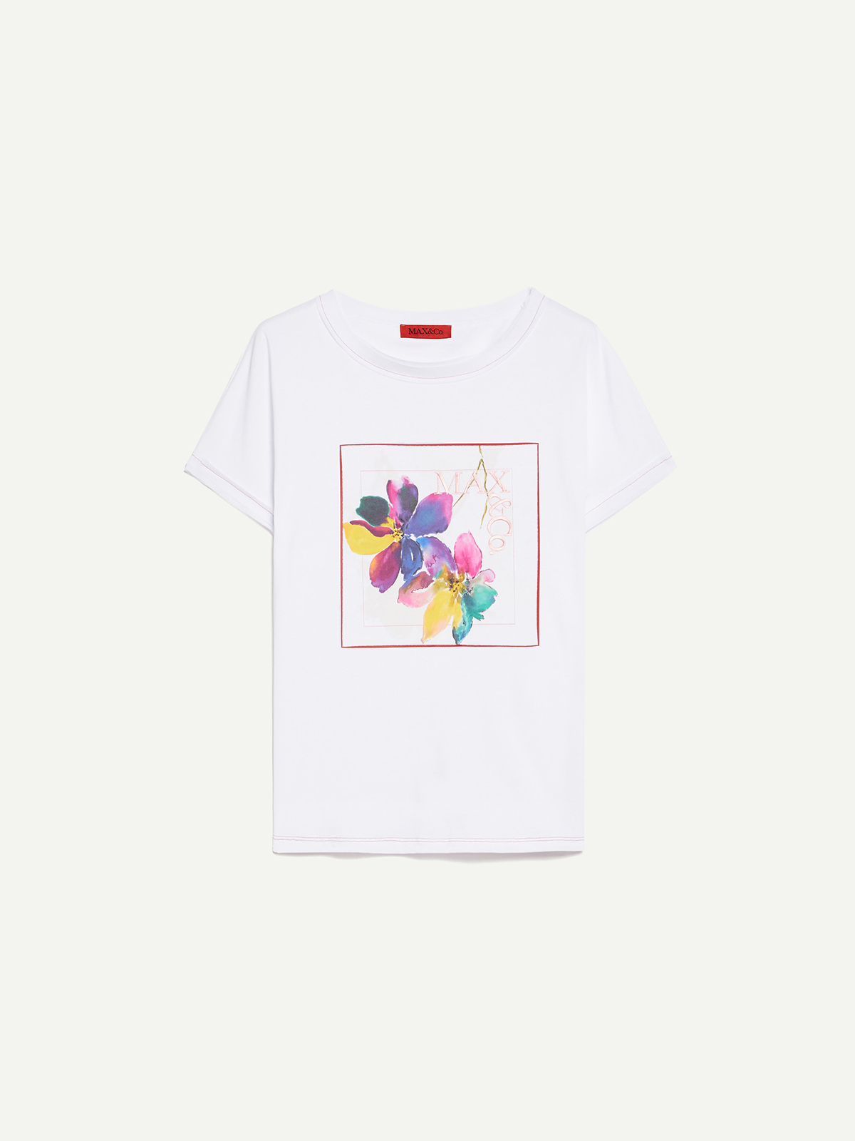 鮮やかなフラワープリントとロゴ刺繍が目を惹くTシャツ。 首元、袖口にジョイントしたオーガンジー素材や配色ステッチが春夏らしい軽やかなアクセントを加えます。 コットン100%のナチュラルな素材感で快適な着心地も魅力。 スカートからパンツまで合わせるボトムを選ばず、デイリーに活躍します。 <スタイル>ラウンドネック、フレンチスリーブ
