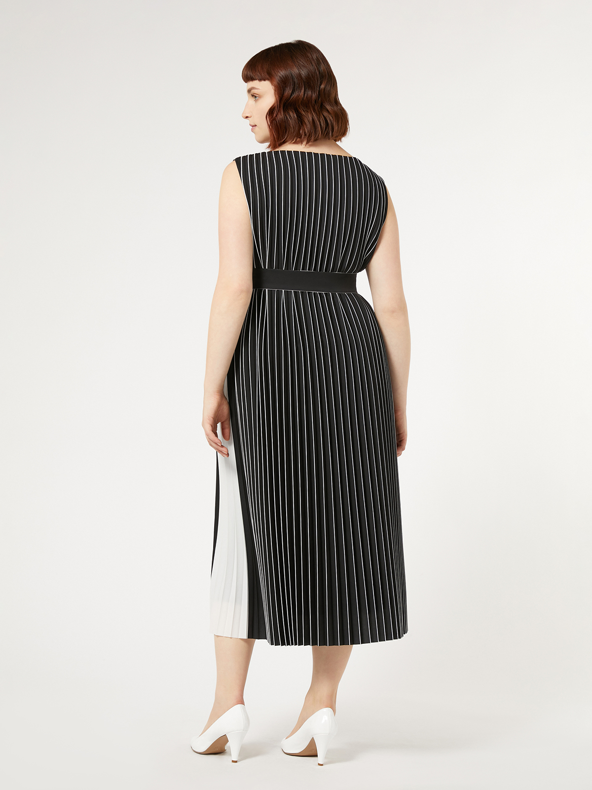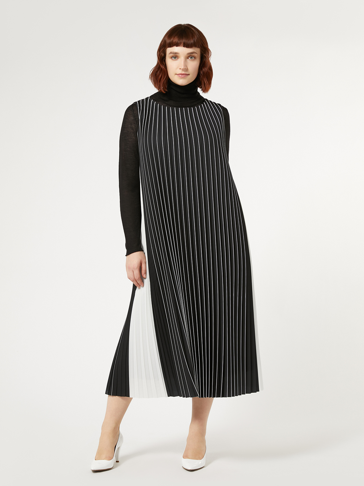 サイドに合わせた無地カラーが縦のラインを強調し、スマートなストレートシルエットを演出します。