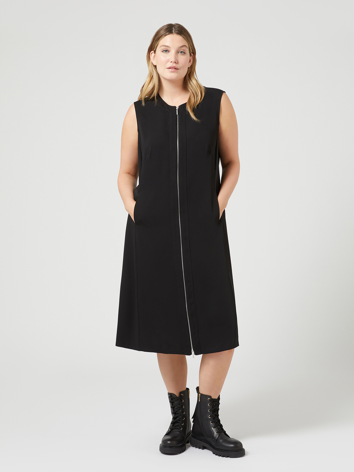 フロントジップやサイドの切り替えが縦のラインを強調し、綺麗なシルエットを魅せながらスタイルアップを演出します。