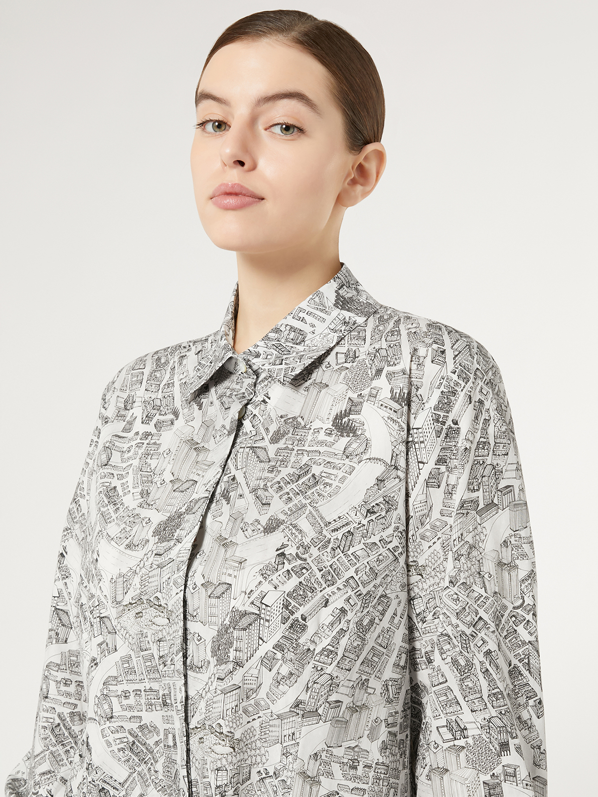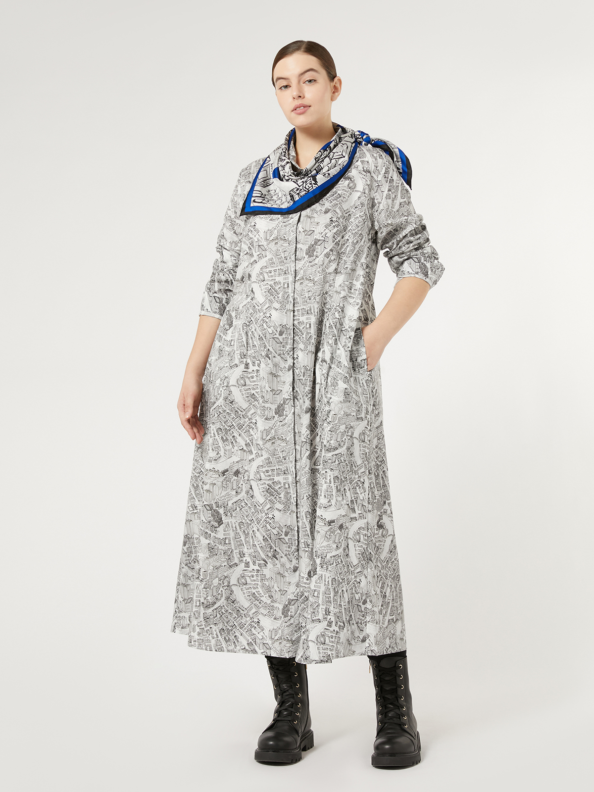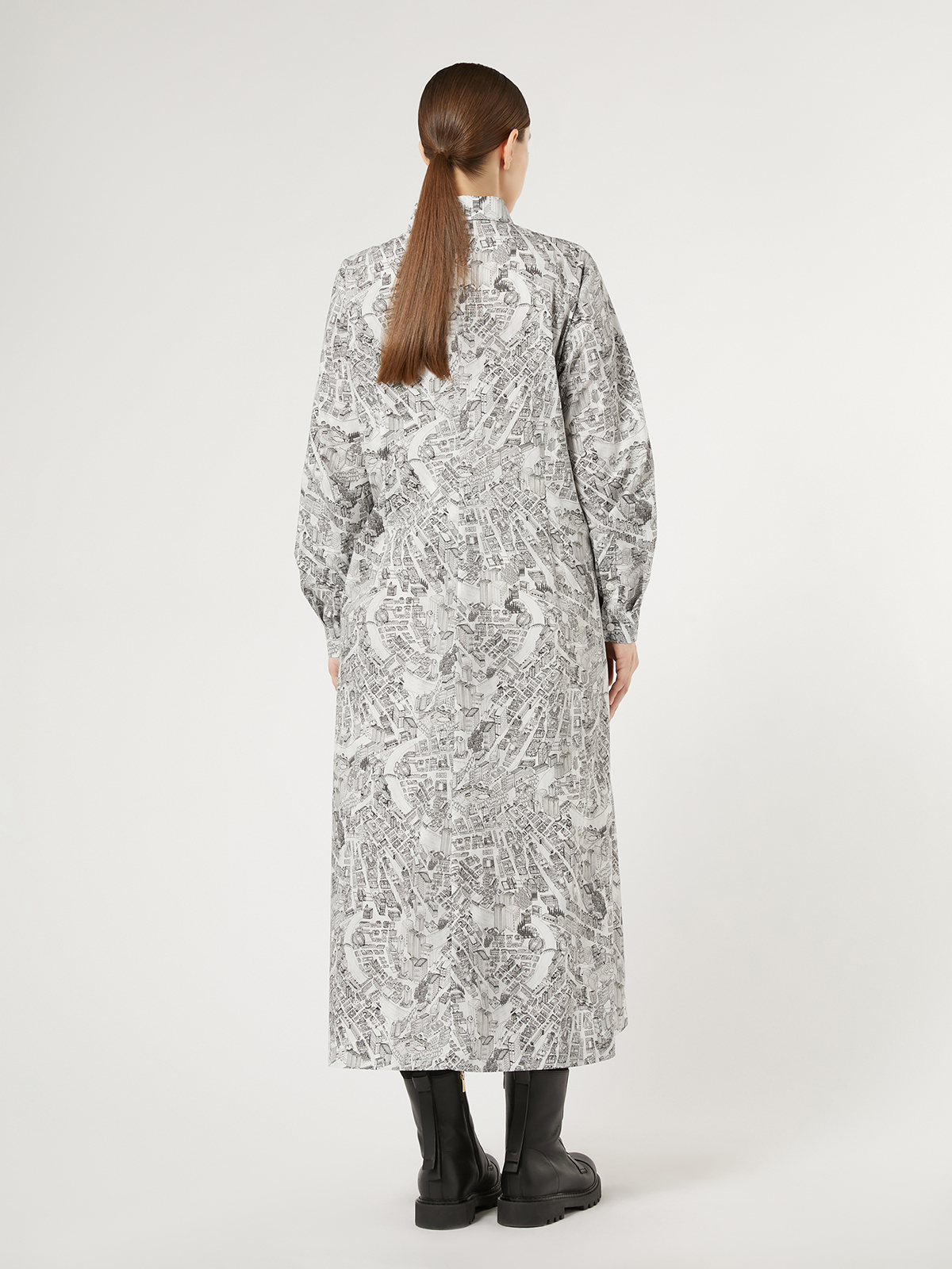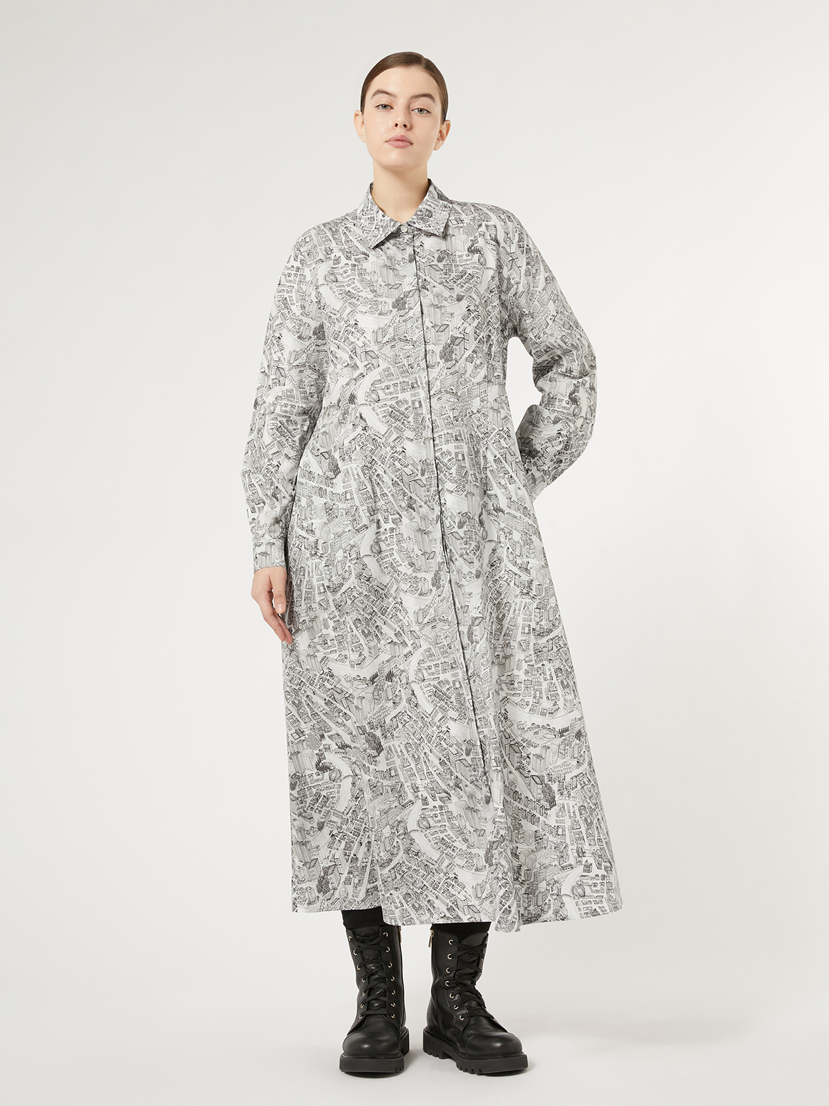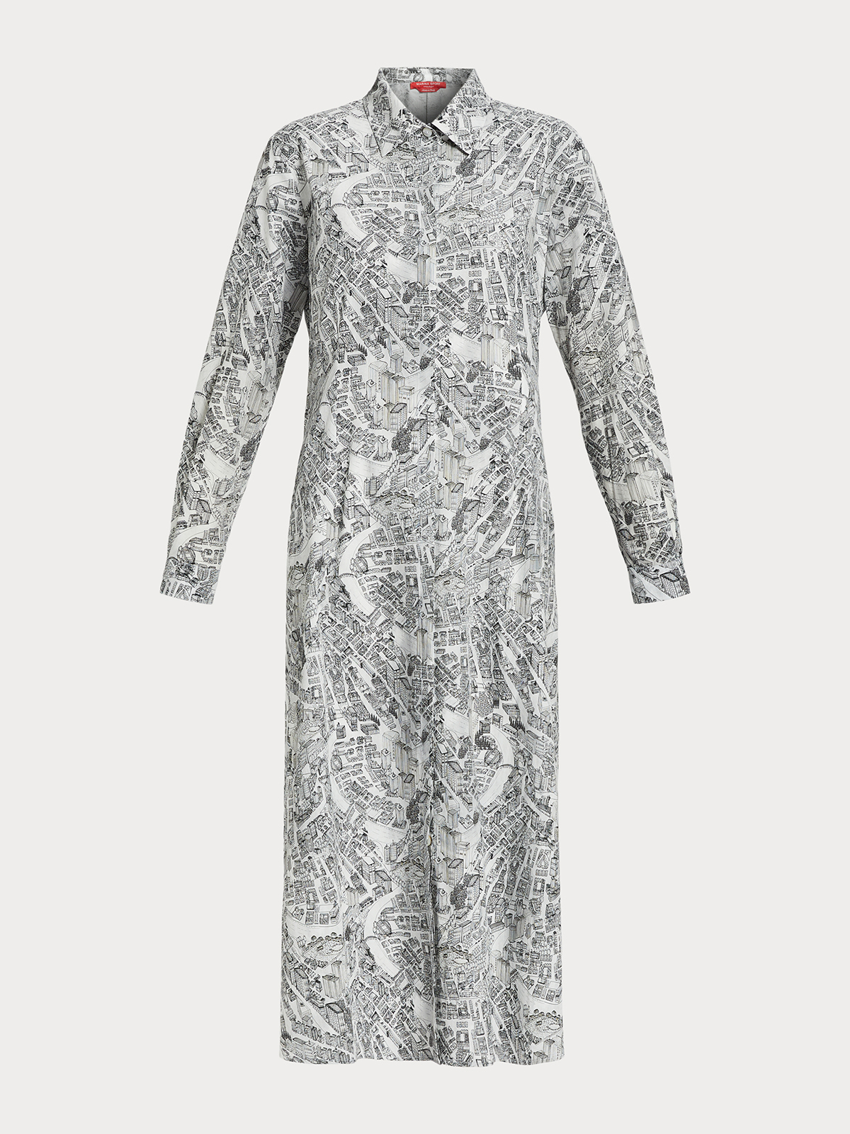 町並みを描いた線画タッチのアートなプリント総柄が魅力的なデザインドレス。