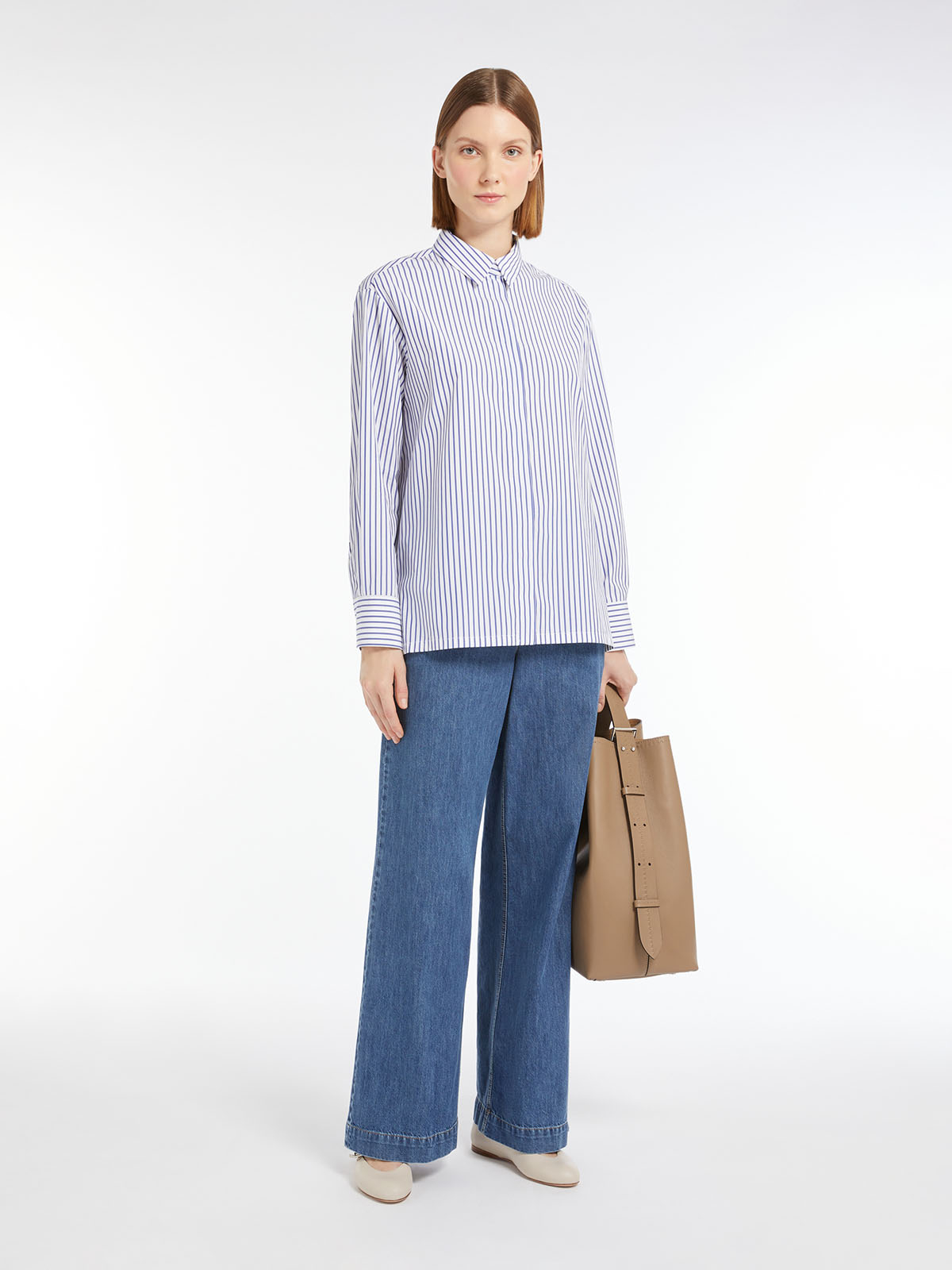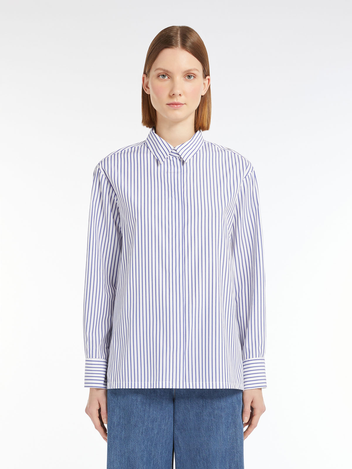 爽やかなストライプ柄が目を引くシャツ。ウォッシュ加工を施したコットンならではのさらりとした軽やかな着心地が魅力です。クラシックなシャツカラーに、ストレートライン。背中にはボックスプリーツがあしらわれ立体感のあるシルエットを演出します。パンツにもスカートにも合わせやすく幅広いコーディネートでお楽しみいただけます。<ポケット>なし<スタイル>比翼仕立てのボタン留め