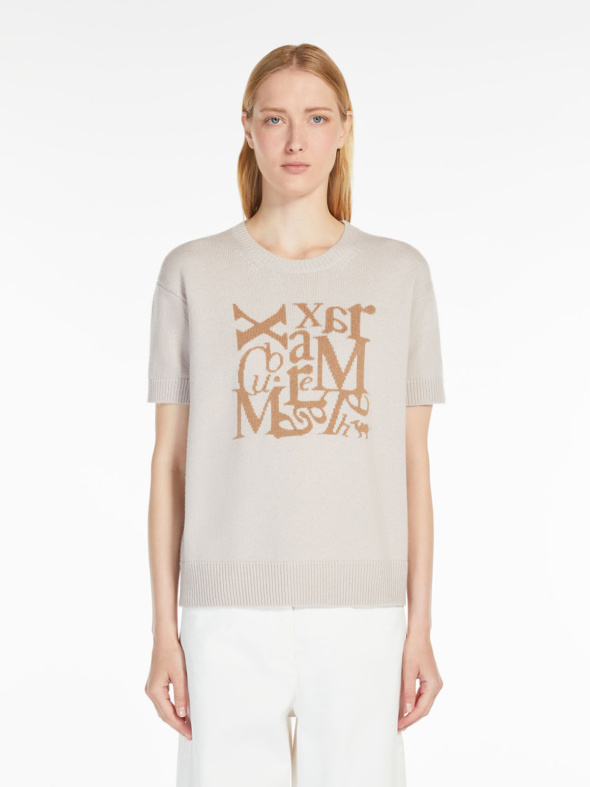 "THE CUBE"コレクションのディテールがジャカード編みであしらわれたニット。