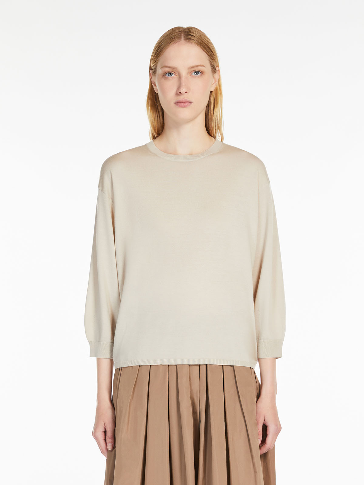 シンプルなシルエットが魅力的なニット。上質なヴァージンウールを使用し、暖かな肌触りと薄手で軽やかな着心地が魅力です。シルエットは、クルーネックの八分袖。ゆったりとしたドロップショルダーがリラックス感を醸し出します。合わせるボトムスを選ばないシンプルなデザインは様々なコーディネートをお楽しみいただけます。<ポケット>なし<スタイル>クルーネック