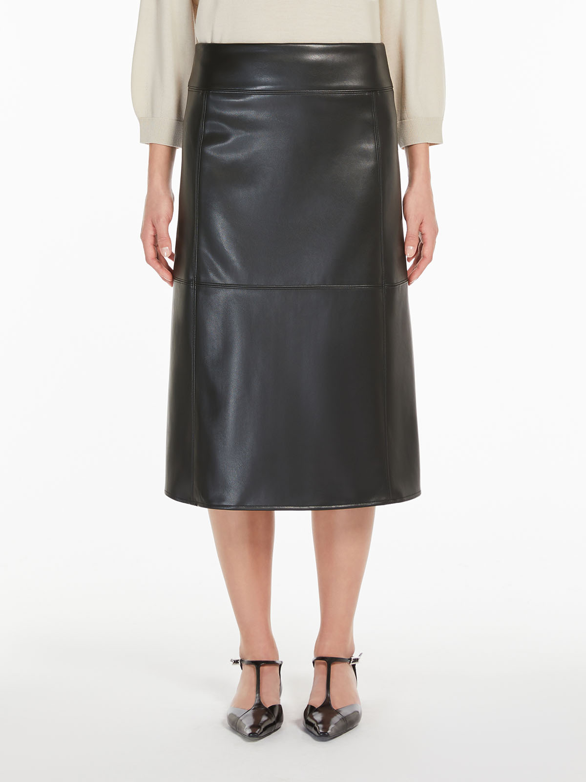 光沢感のあるソフトなコーディング生地を使用したミディスカート。