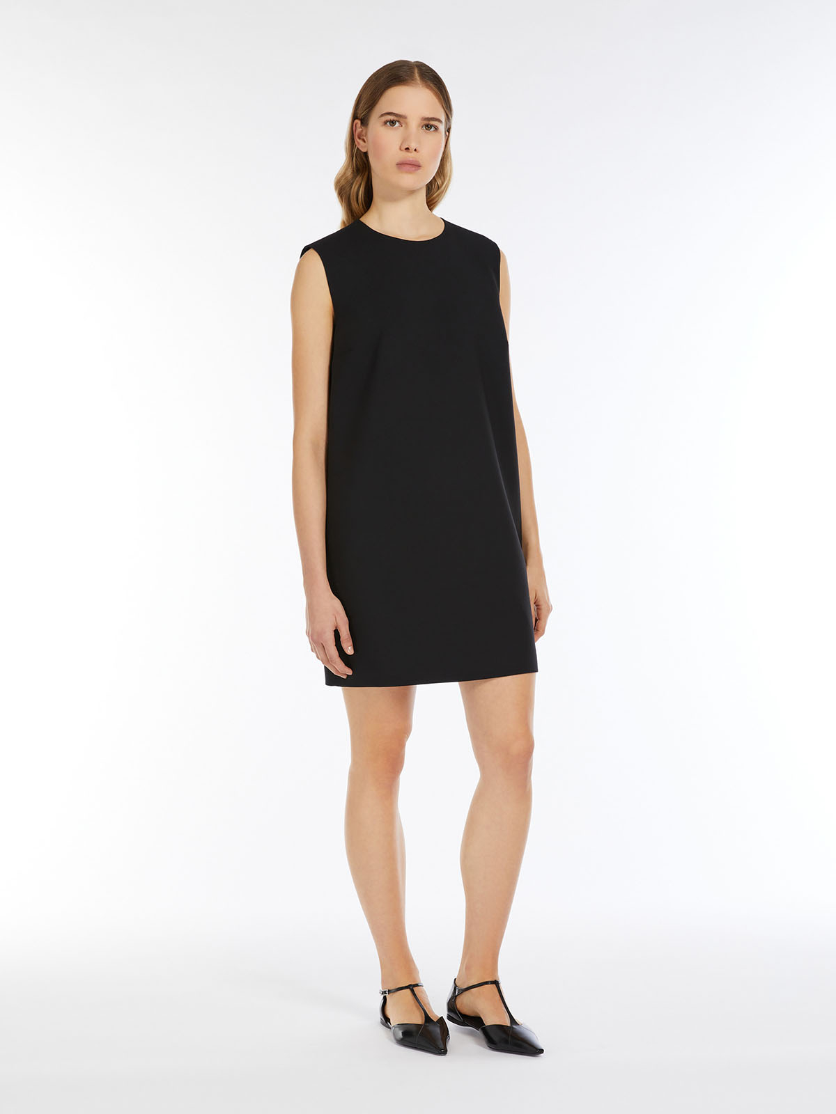 シンプルなデザインが目を引くノースリーブミニドレス。