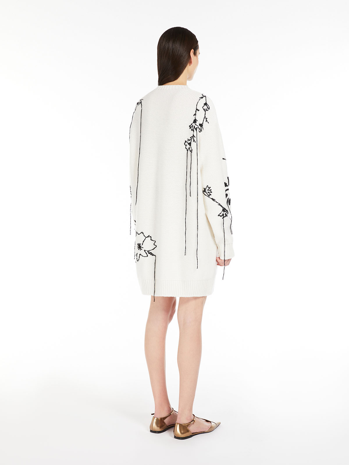 ブラックの糸の刺繍が目を引くニットドレス。