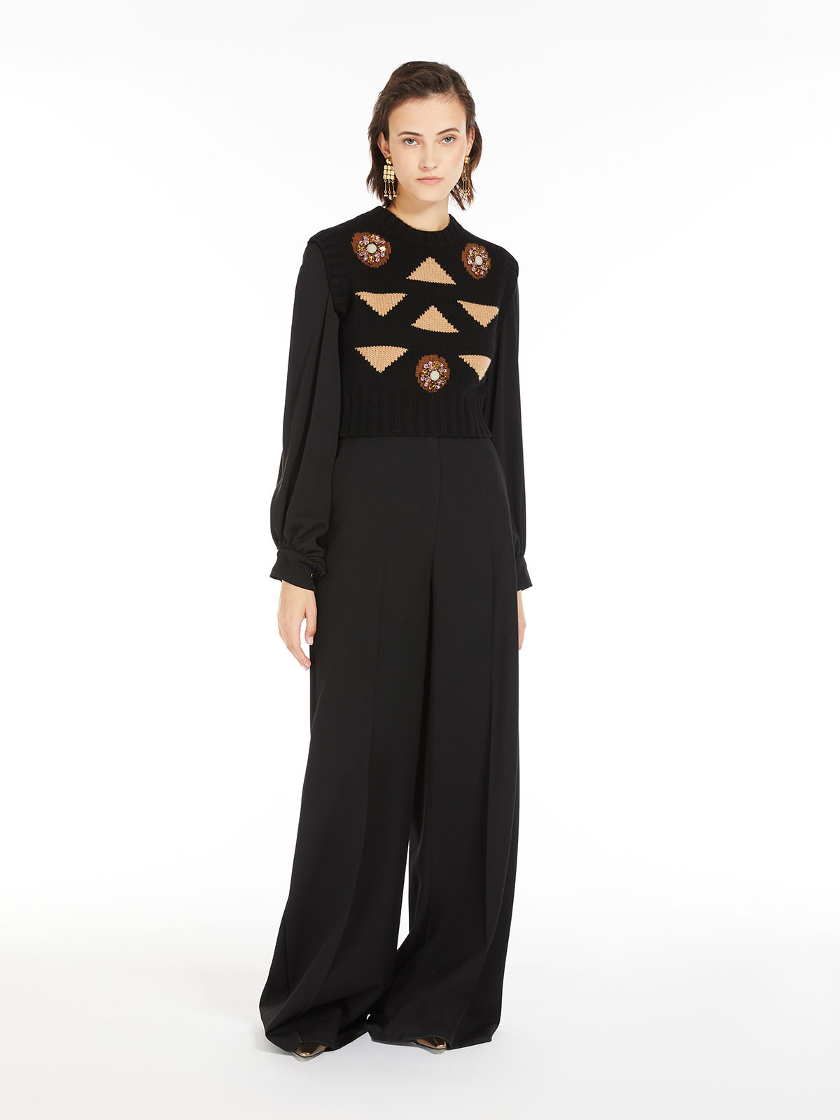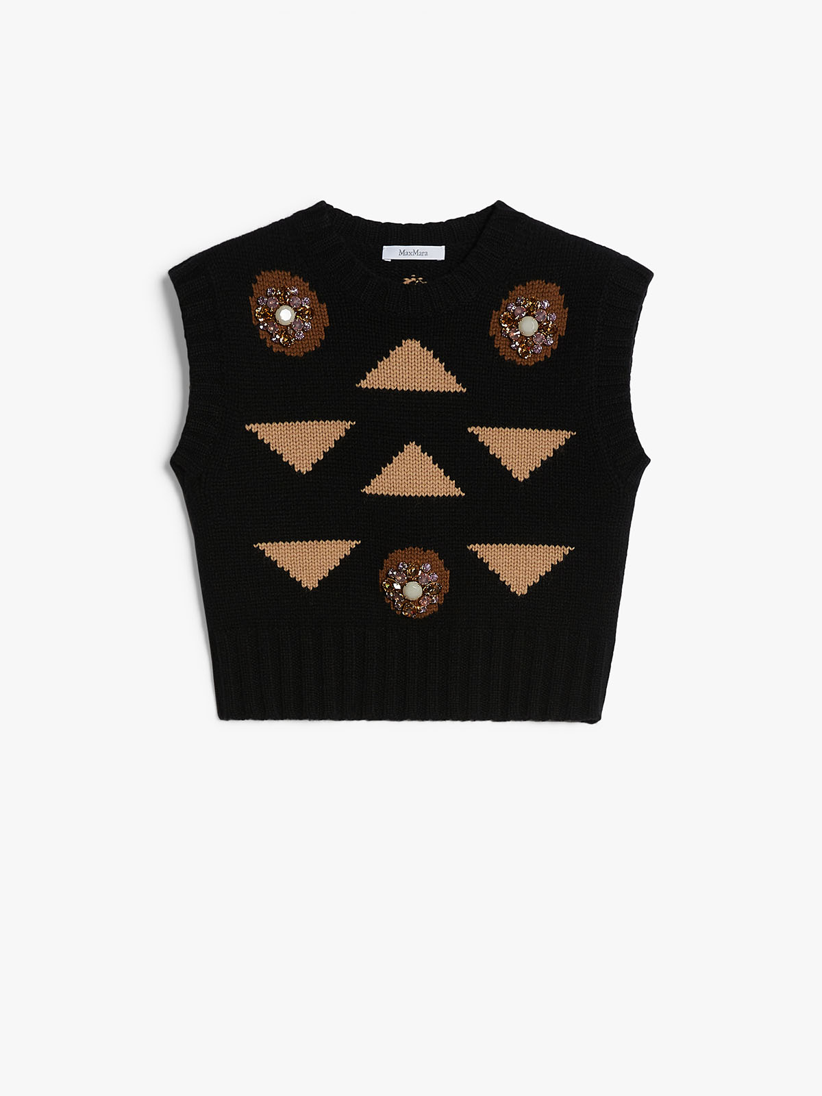 インターシャとビジューのディテールが特徴的なニットベスト。