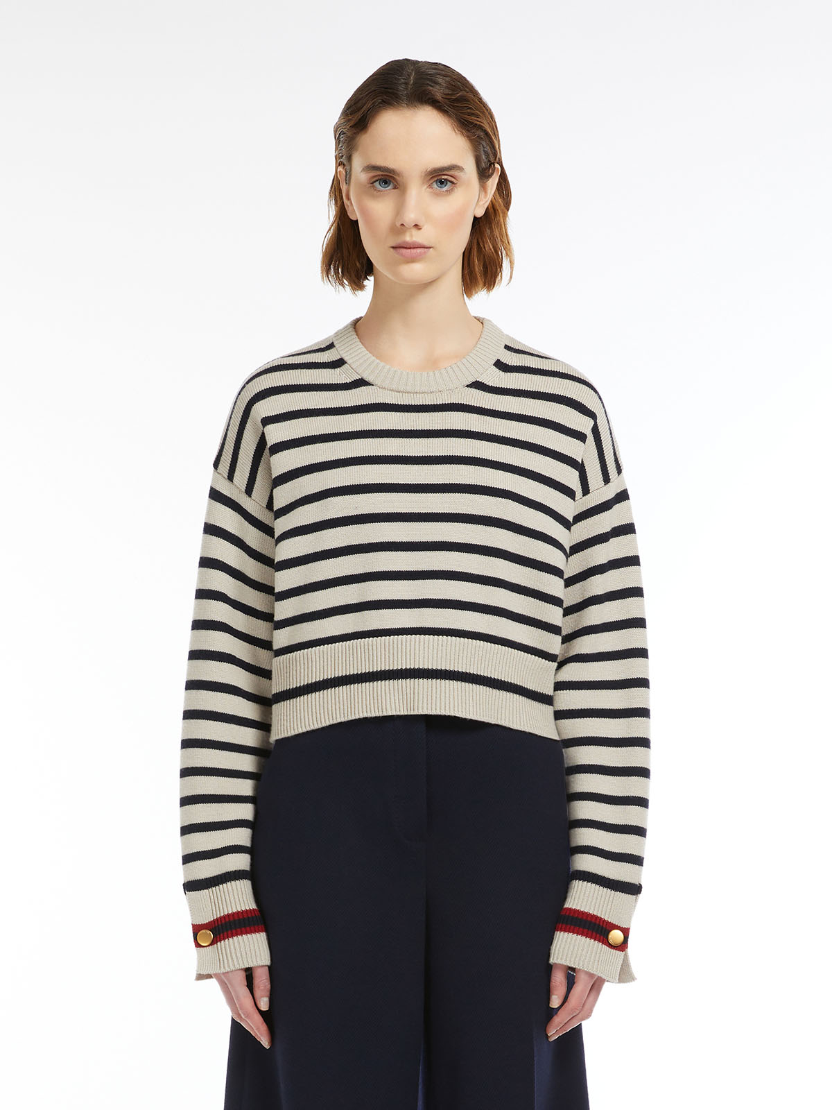 春らしいボーダーデザインをあしらったニット。