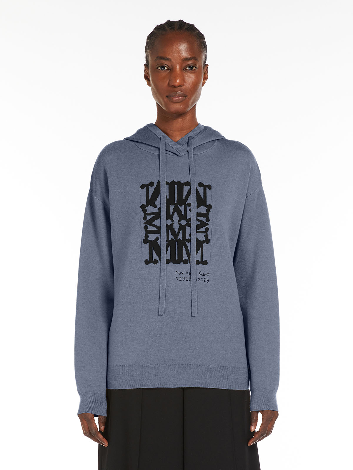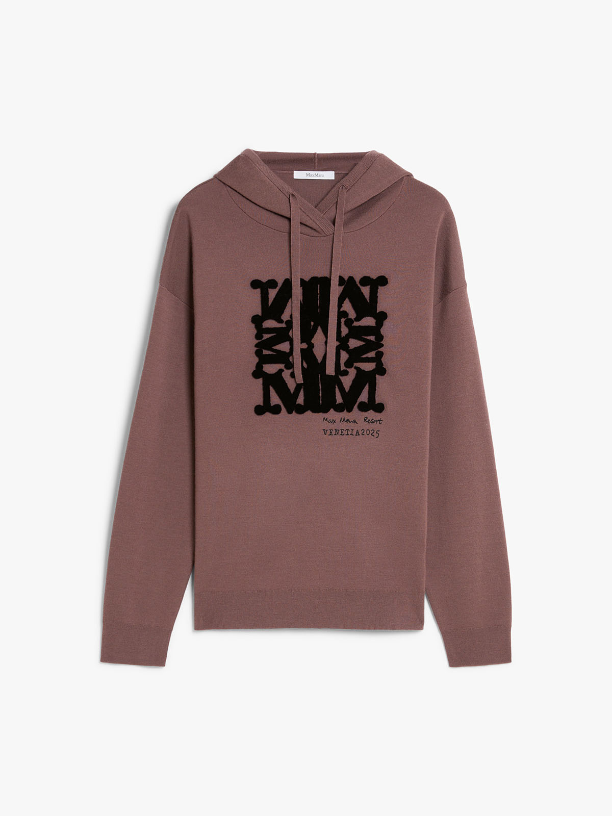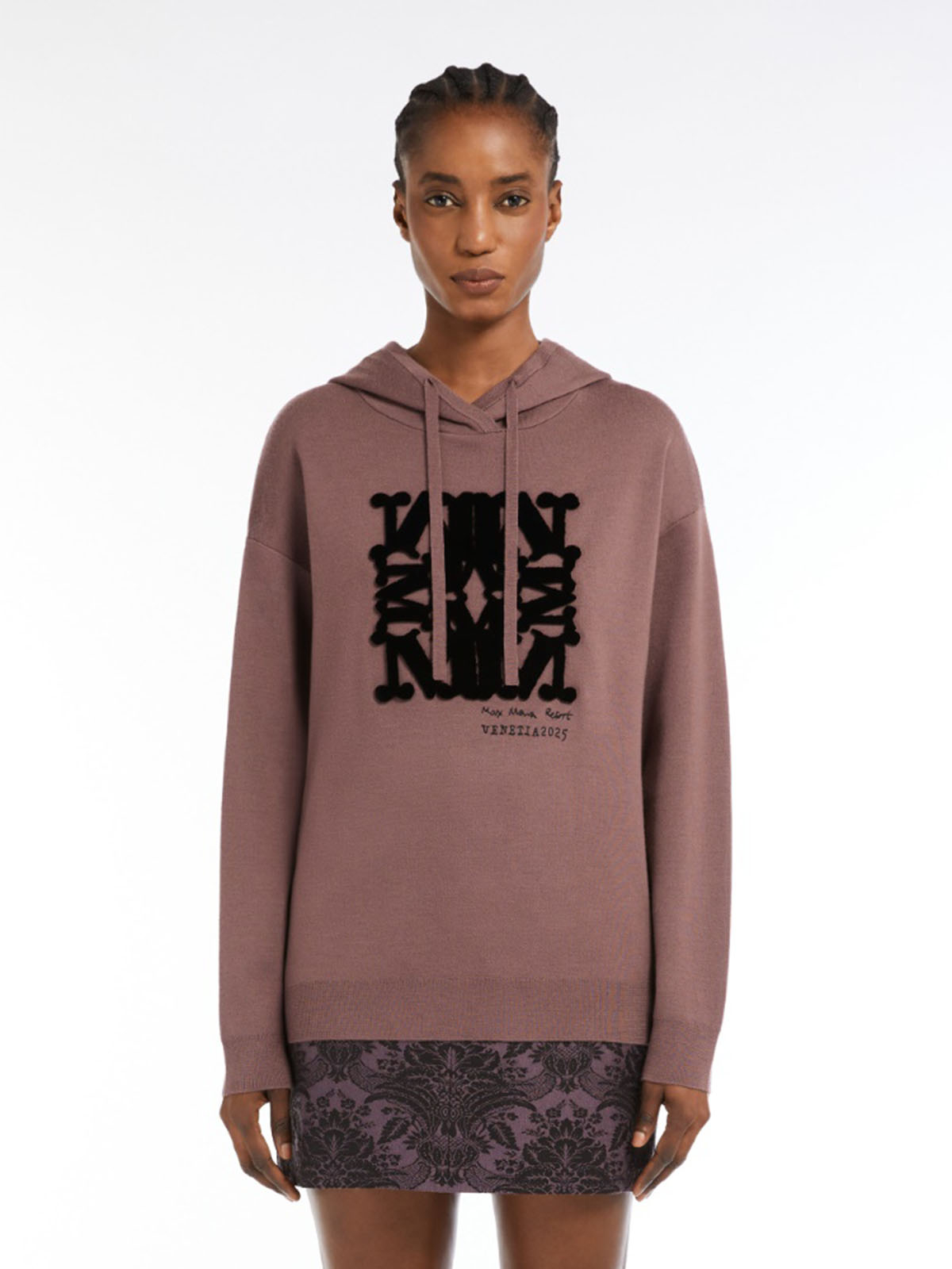 フロントにあしらった”MaxMaraBesque”フロックデザインが目を引くフード付きニット。上質なヴァージンウールを使用した14ゲージのシームレス編みのニットは、柔らかな肌触りと暖かさが魅力です。シルエットは、オーバーサイズ。ドロップショルダーがリラックス感を演出します。シンプルなデザインでスカートにもパンツにも合わせやすい着丈も魅力です。<ポケット>なし<スタイル>フード、長袖