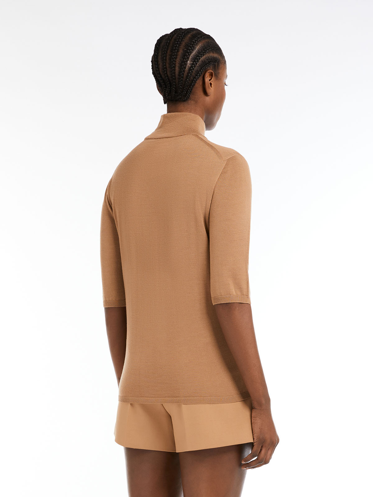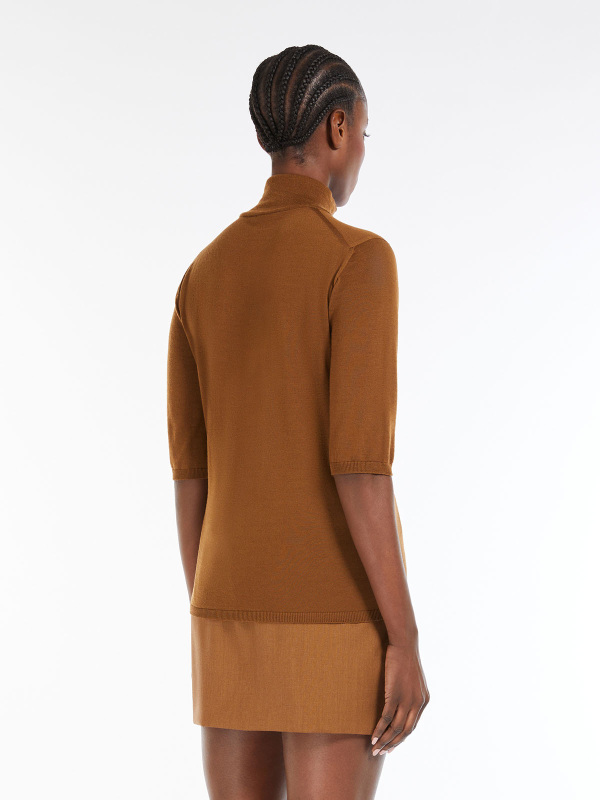 細いヴァージンウールの糸で編まれた18ゲージのハイネックニット。上質なメリノウールを使用したシームレス編みで、心地よい肌触りと高い伸縮性をお楽しみいただけます。長いシーズン楽しめる5分袖のニットは、スリーブレスドレスに重ねたり、ジャケットのインナーなど幅広いコーディネートに。<ポケット>なし<スタイル>タートルネック