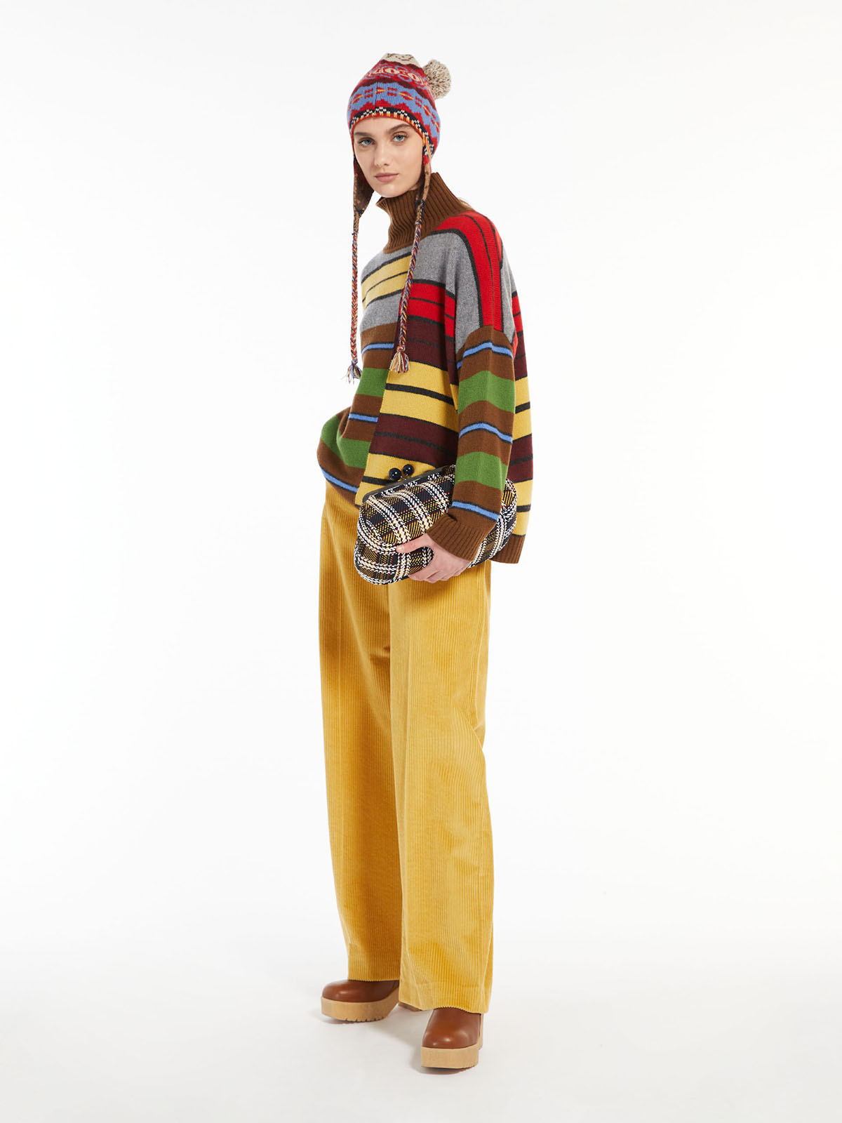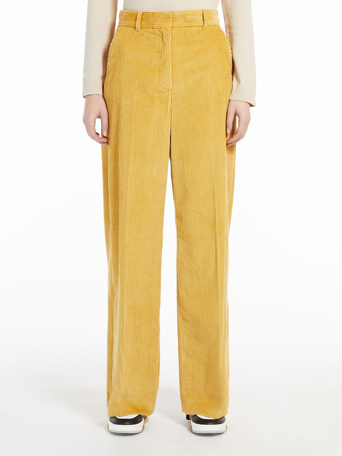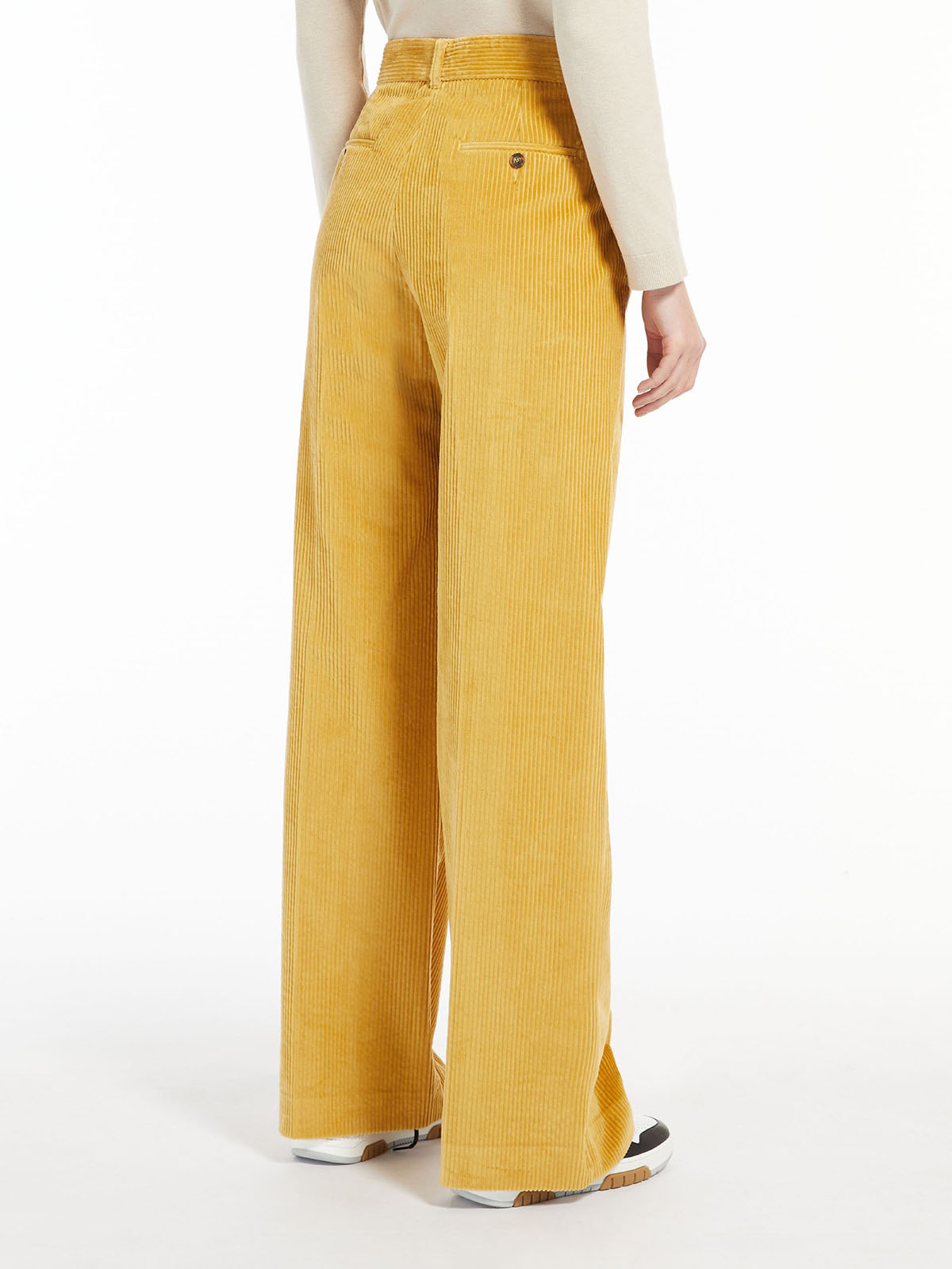 光沢感のあるコーデュロイ素材が上品な印象のワイドパンツ。