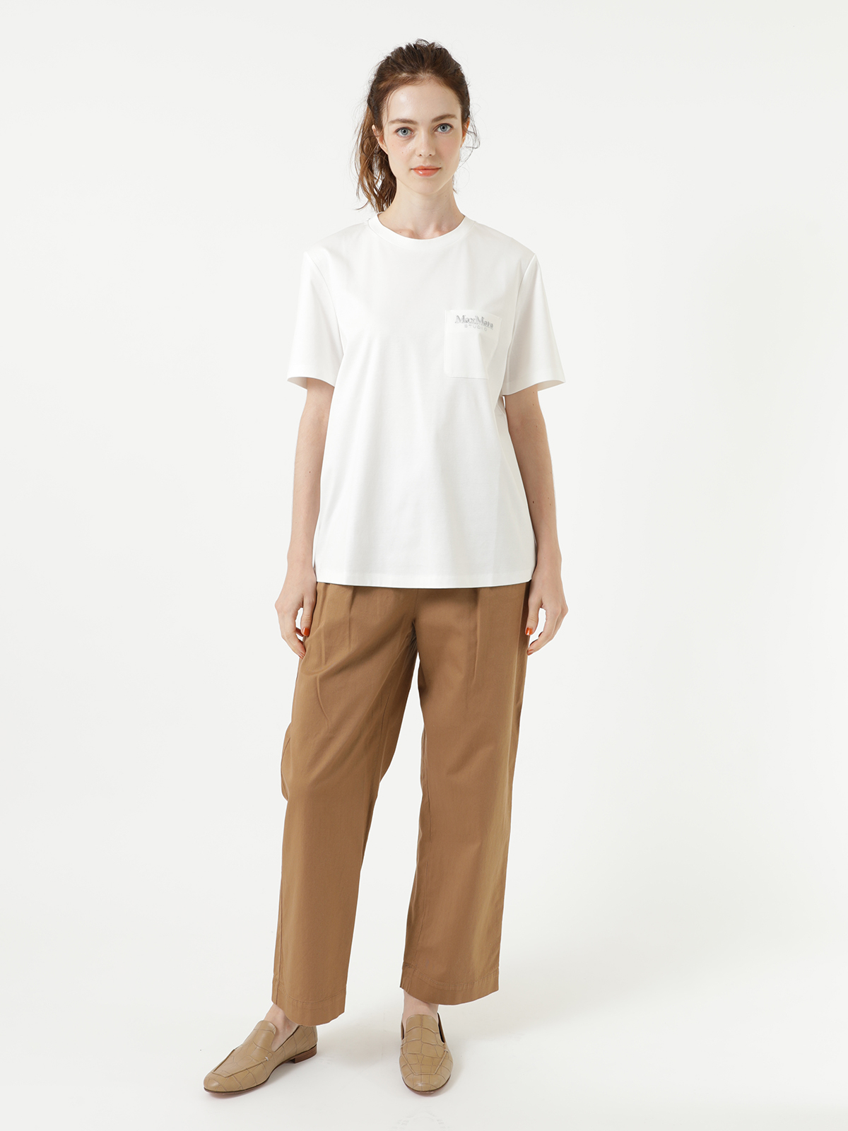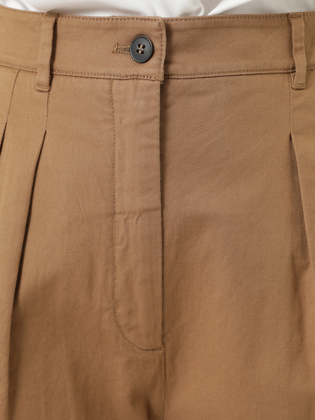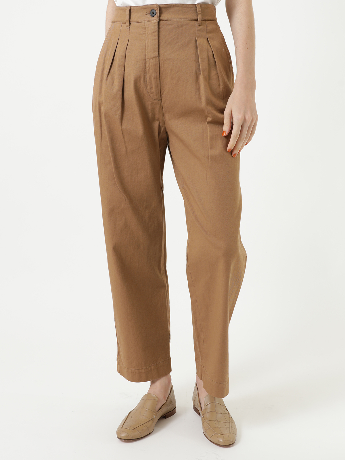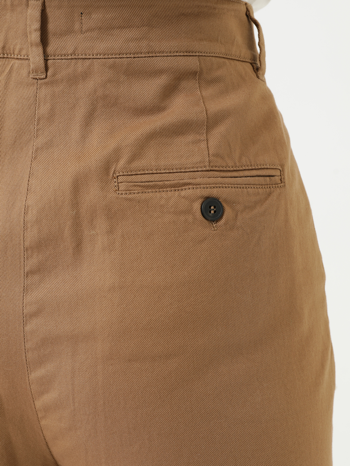 腰回りにゆとりのあるツータック入りのフォルムから裾に向かってやや細くなるシルエットはリラクシーながらも綺麗なラインなのが魅力的です。