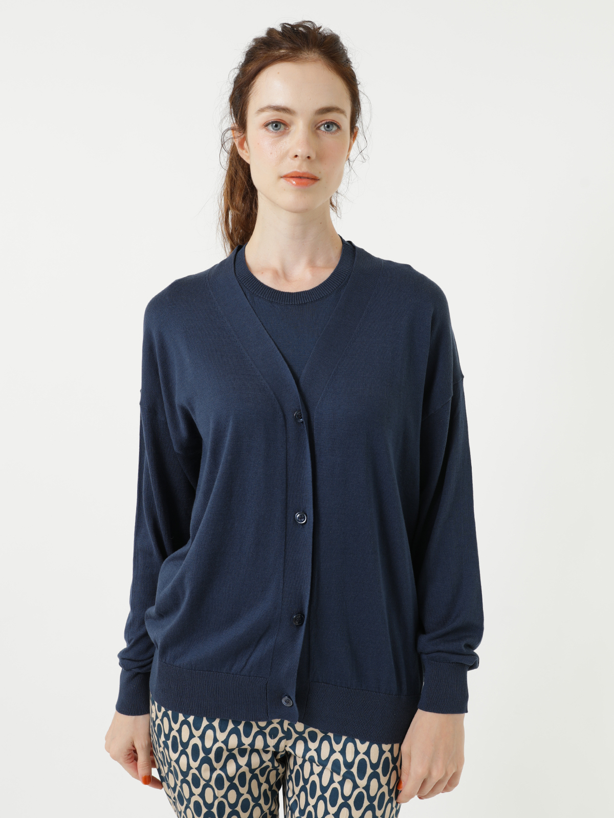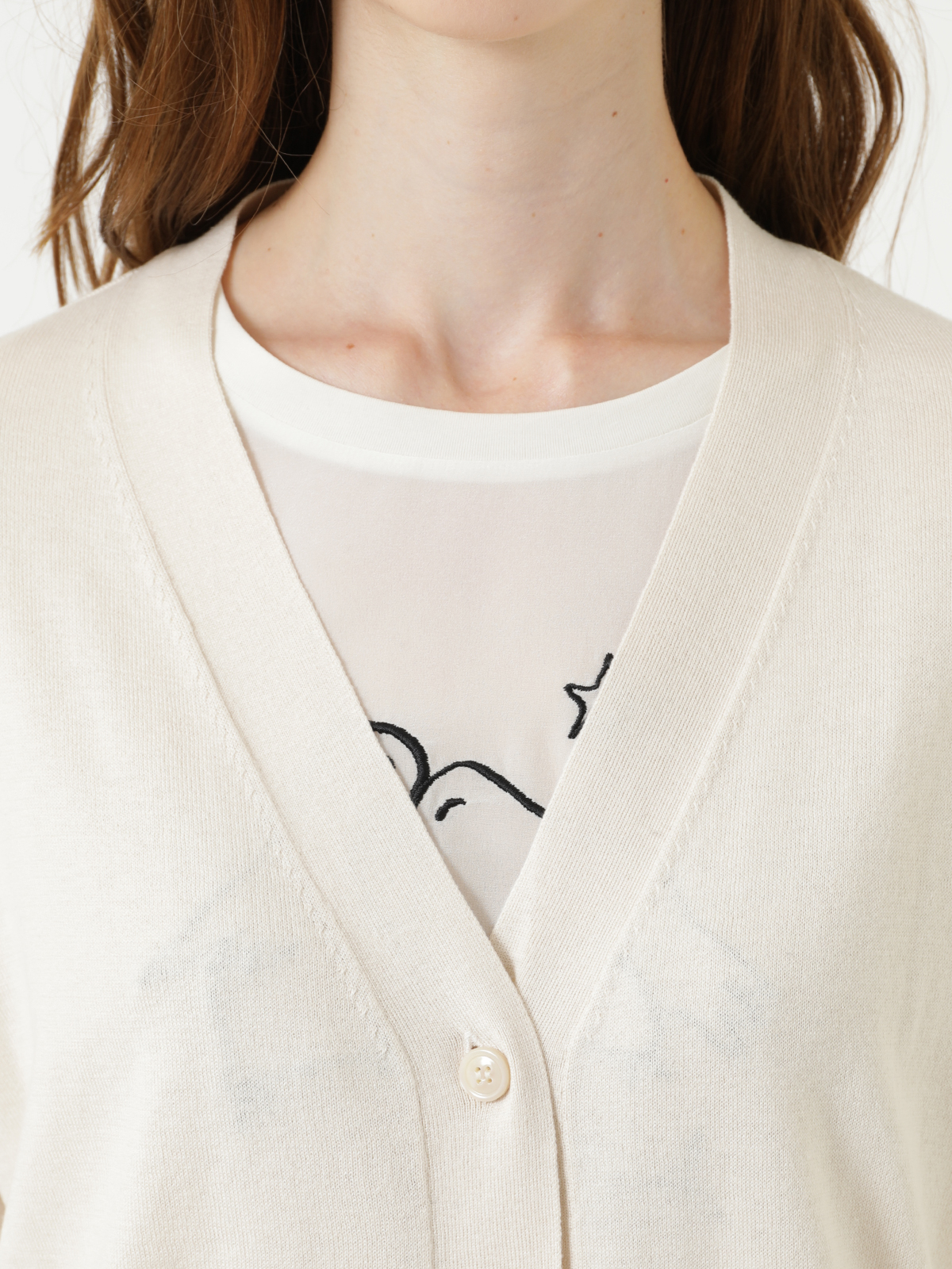 ベーシックなラインで着合わせしやすい シルク コットン Vネック カーディガン。上質でしなやかな風合いのハイゲージニットは肌触りも柔らかく、薄手で軽いお仕立てなのでロングシーズンで活躍してくれます。やや落ち感のあるドロップしたショルダーラインがこなれ感を演出。ナチュラルカラーでスタイリングもしやすいおすすめのアイテムです。<ポケット>なし <スタイル>フロントボタン、Vネック、長袖