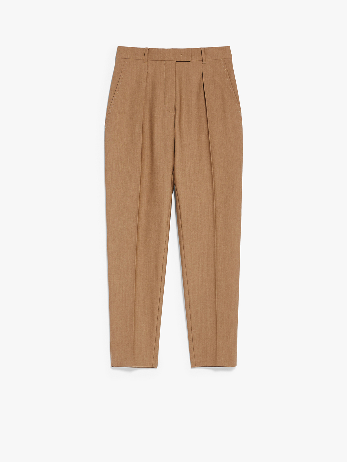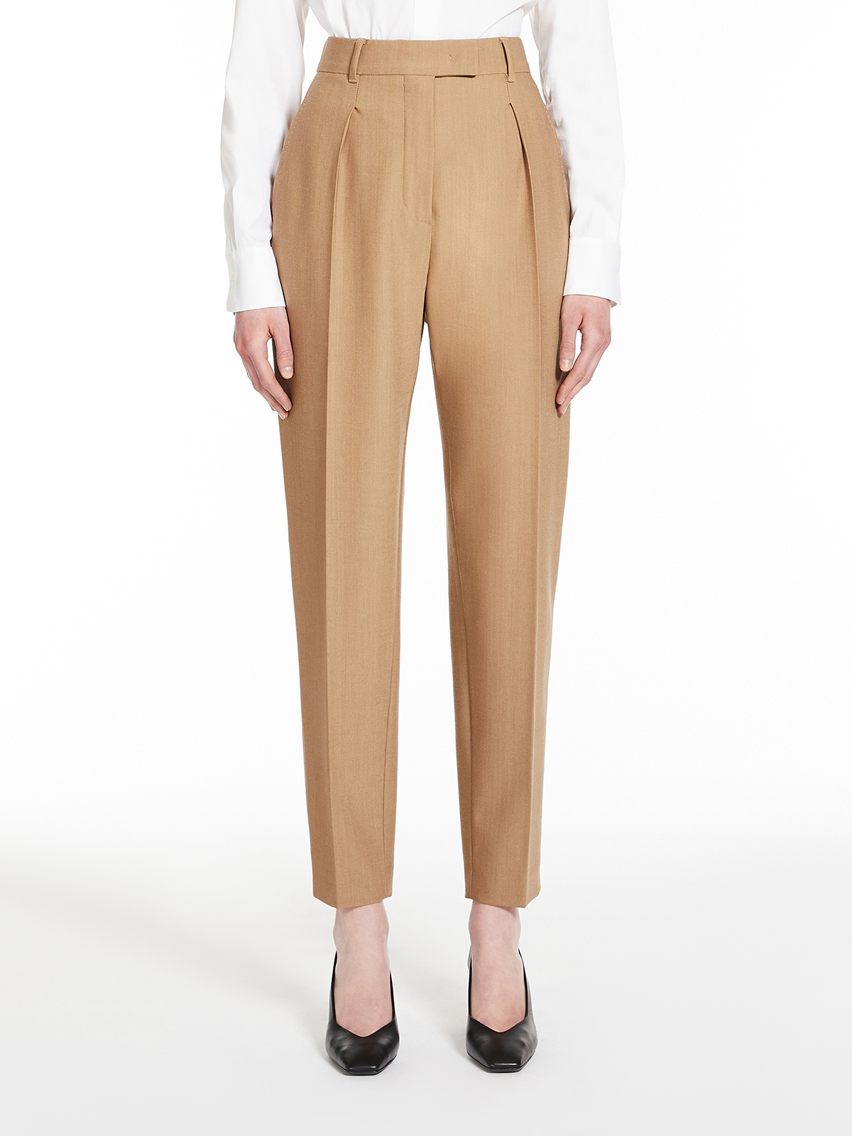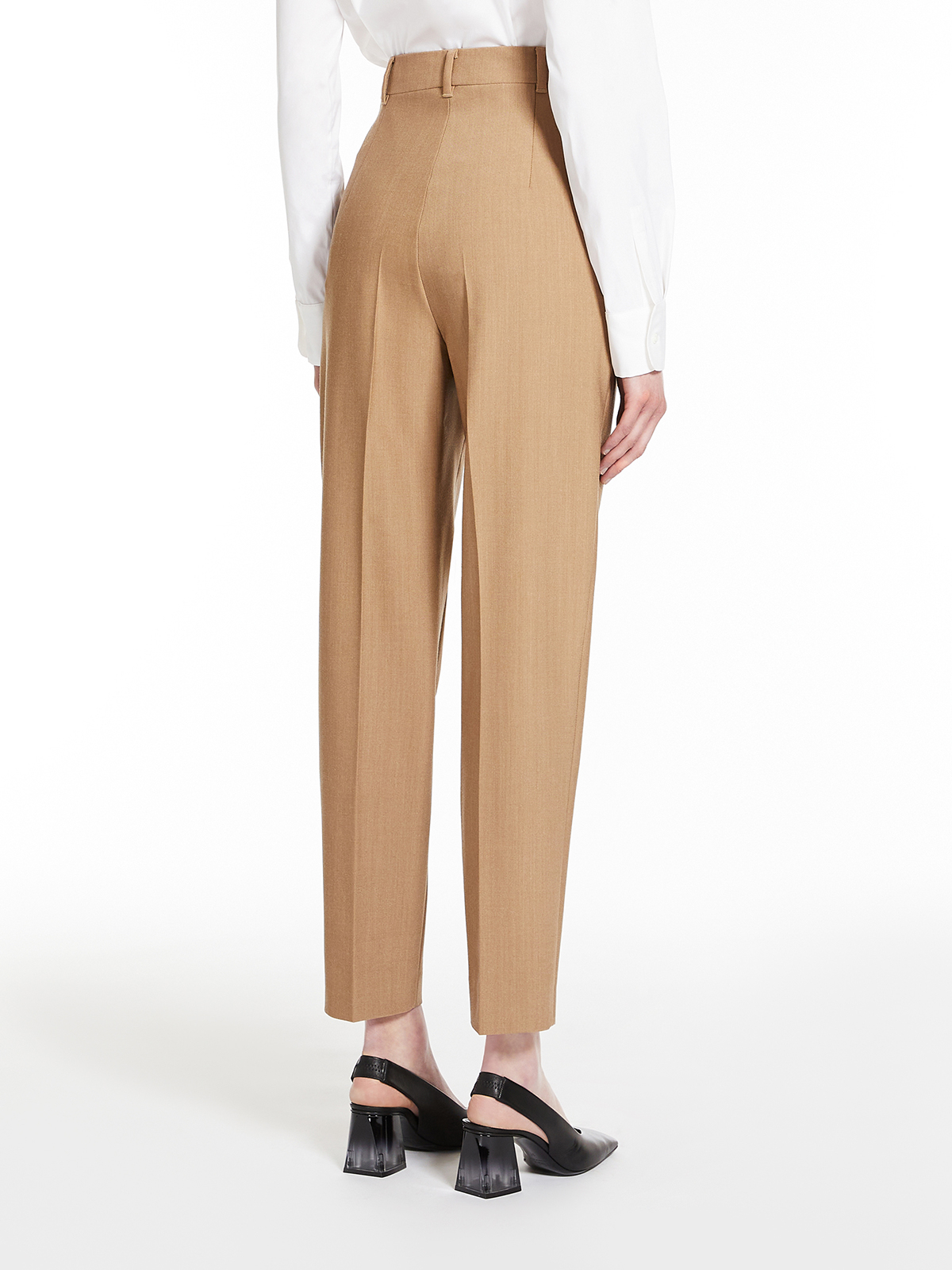 シルエットはウエストにタックを施し、裾に向けて絞られたセンタープレス入りのシガレットフィット。