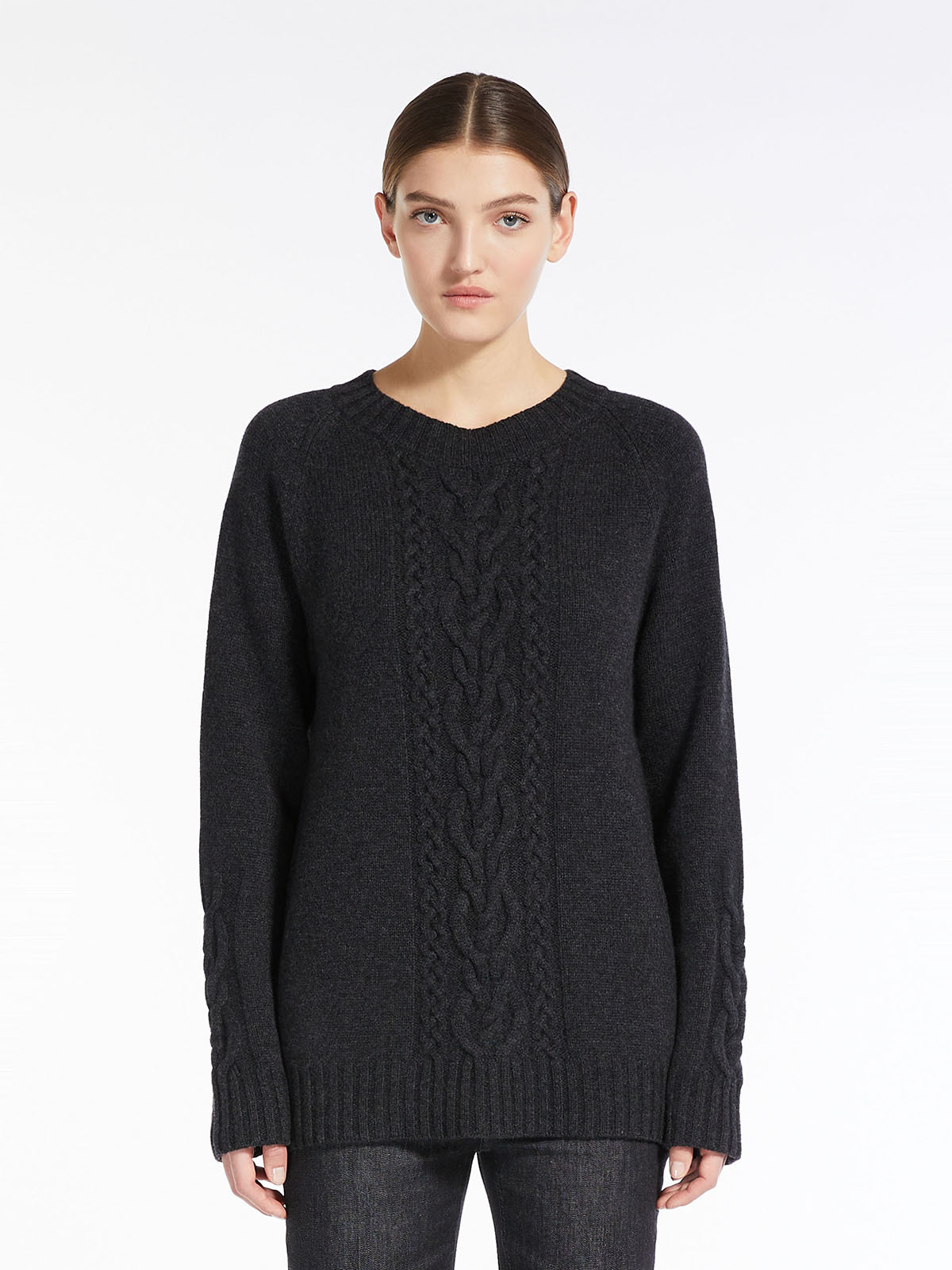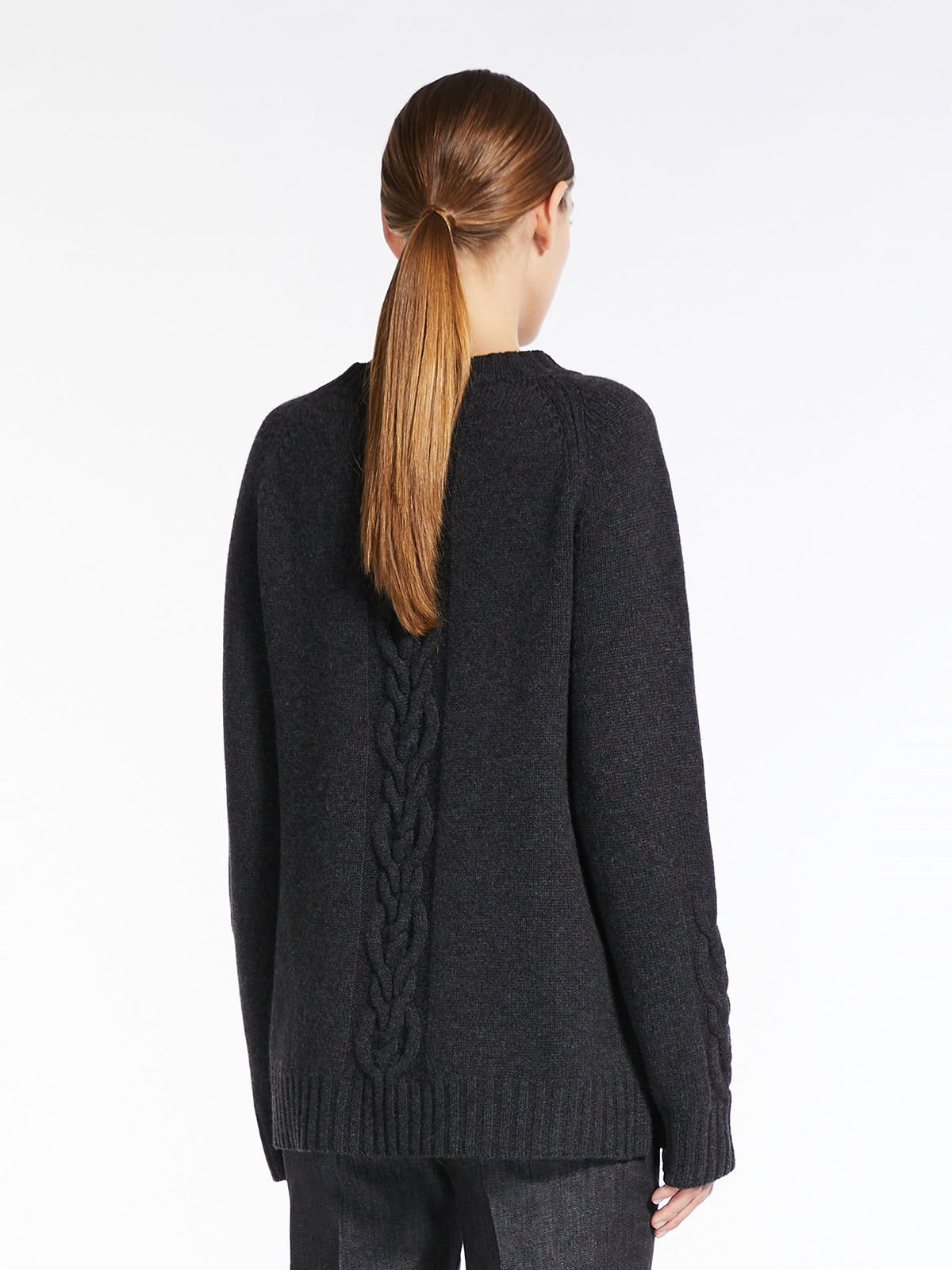 ケーブル編みのディテールが特徴的なウールカシミヤニット。