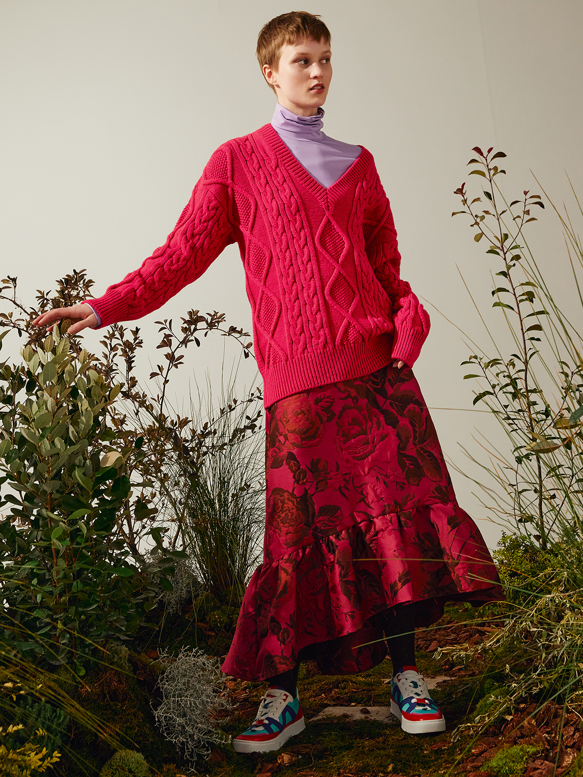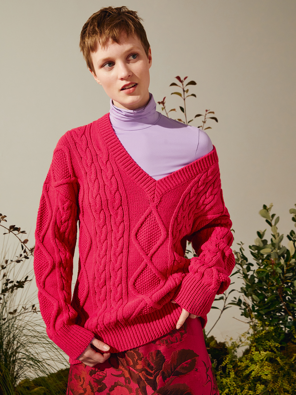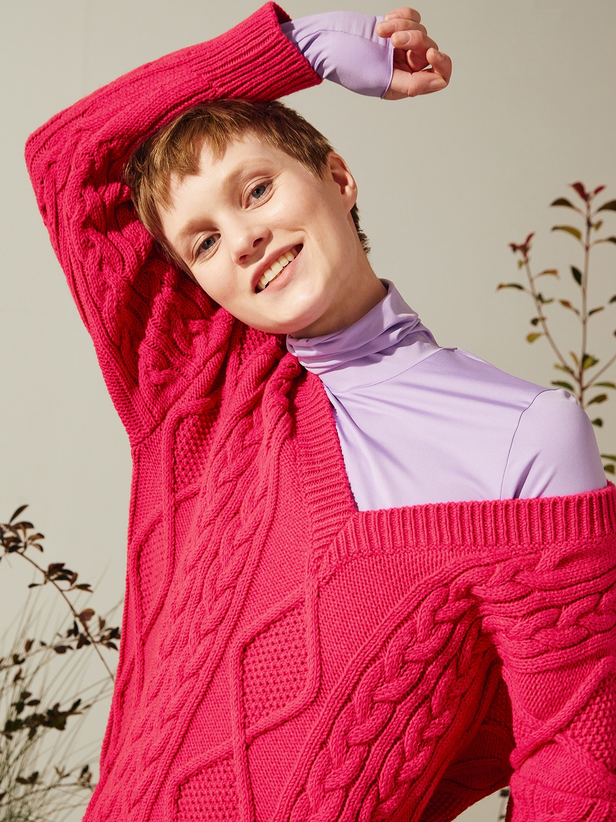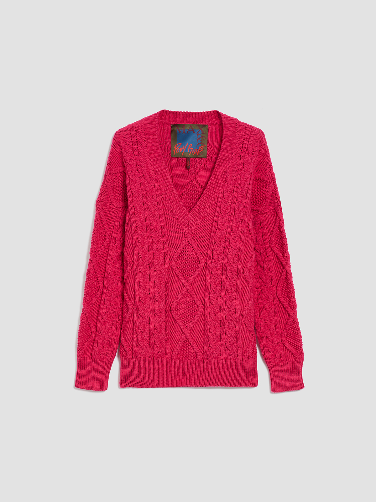 MAX&Co.の新しいデザインパートナーシップ 「 &Co.LLABORATION (アンド コラボレーション )」の「ポニーライド」から、存在感のあるケーブル編みのウールブレンドニットが登場。