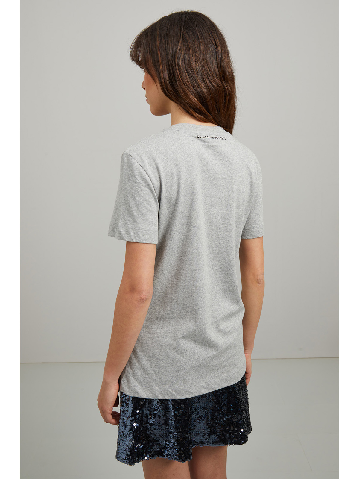 着心地の良いコットンジャージー素材で、すっきりとしたストレートフィット。ビーズ刺繍の花のアップリケで仕上げられています。