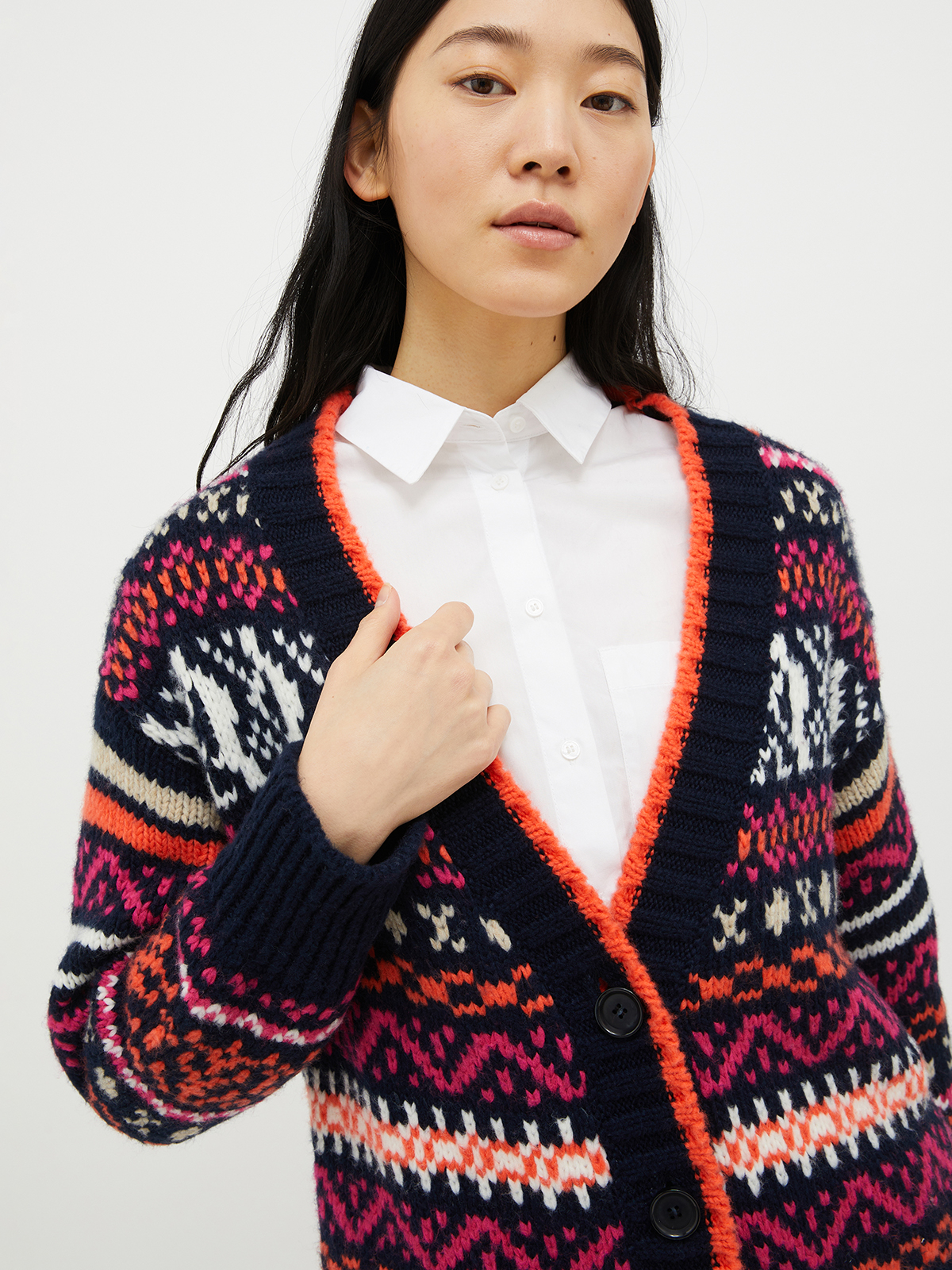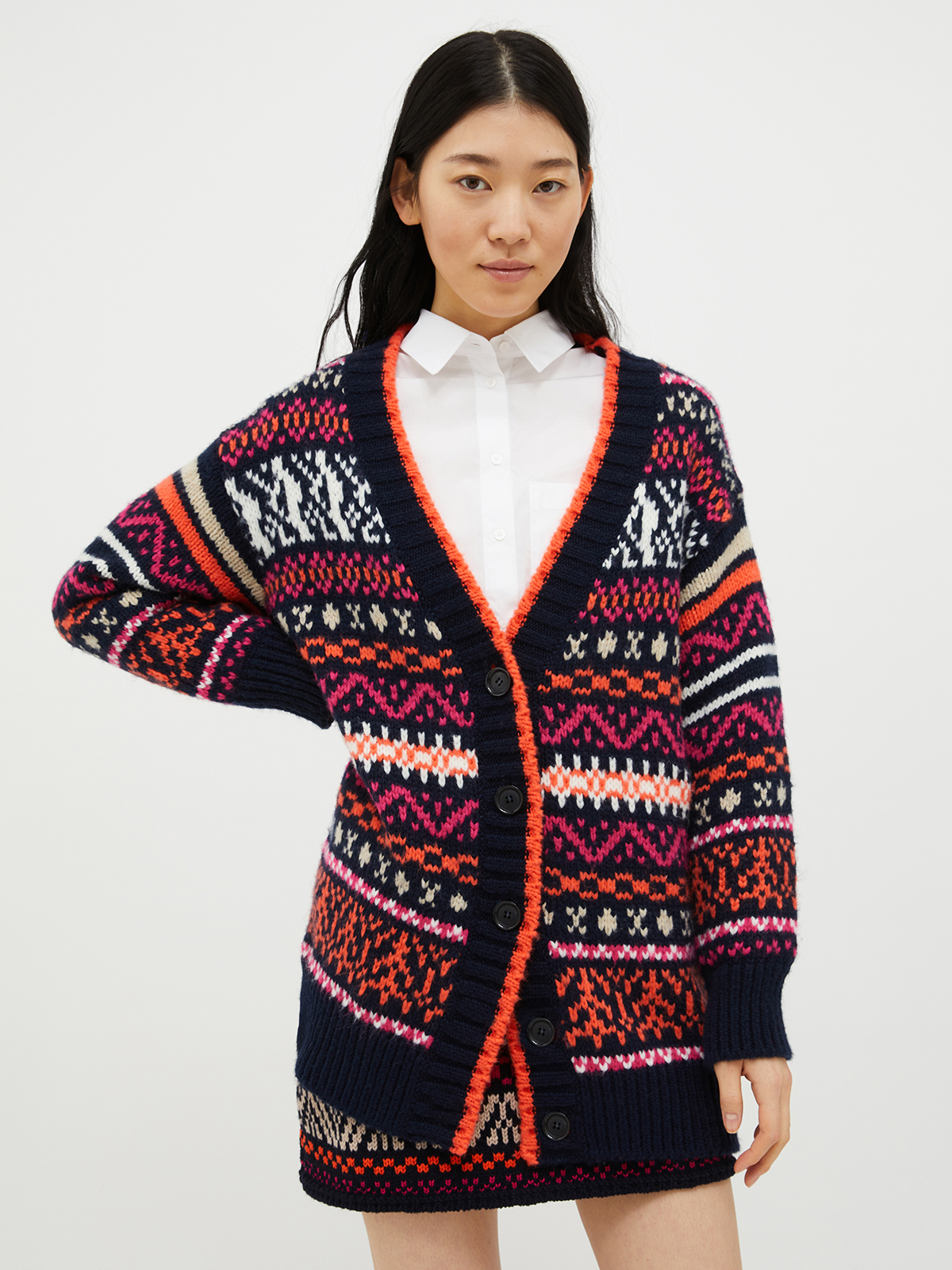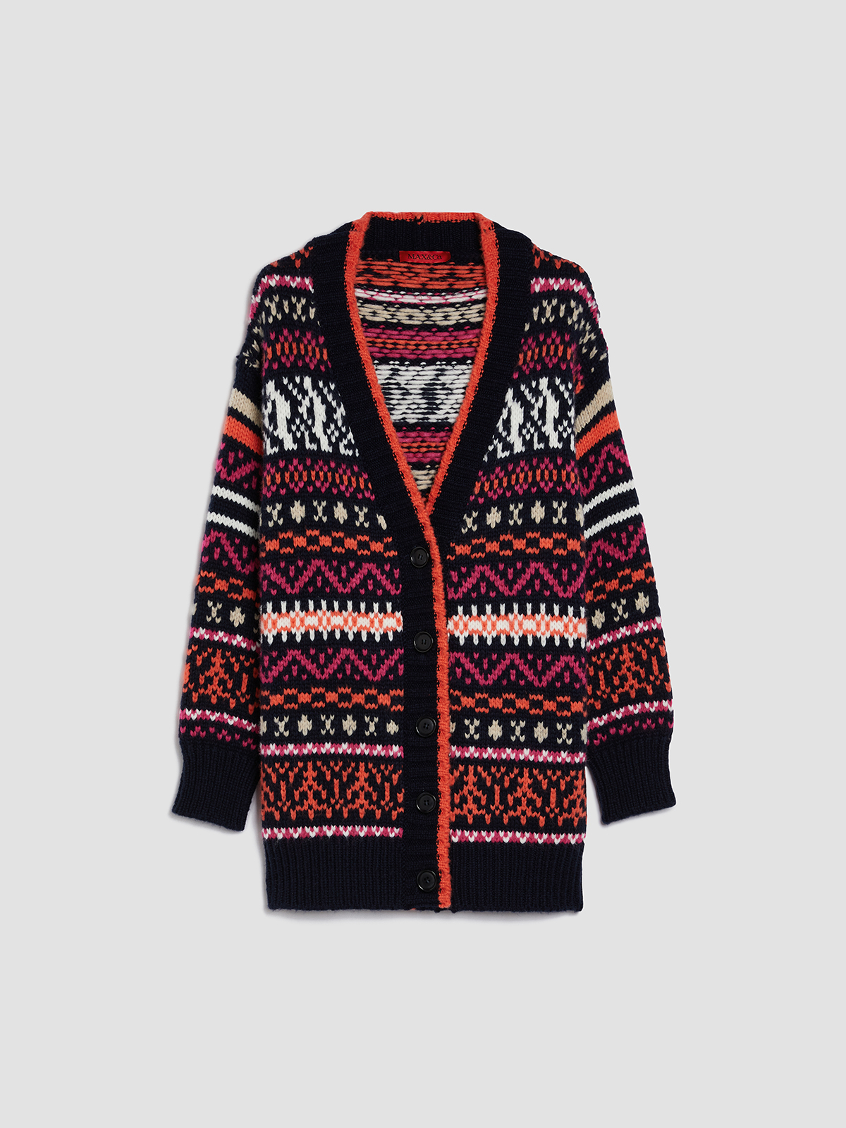 イタリア製のヤーンを使用したジャカードロングカーディガン。