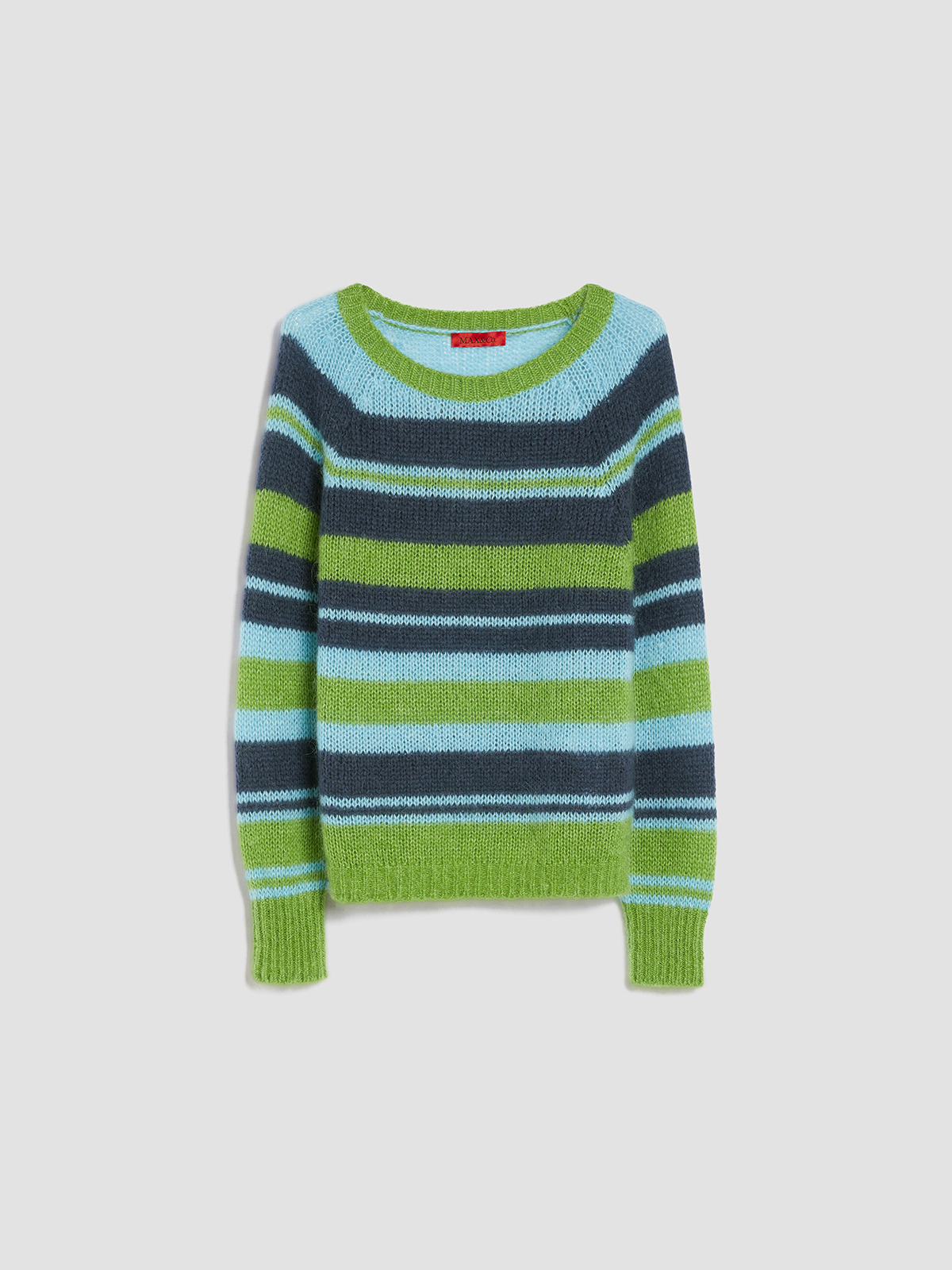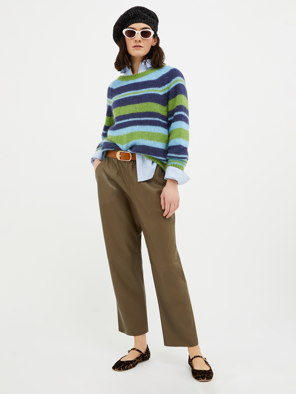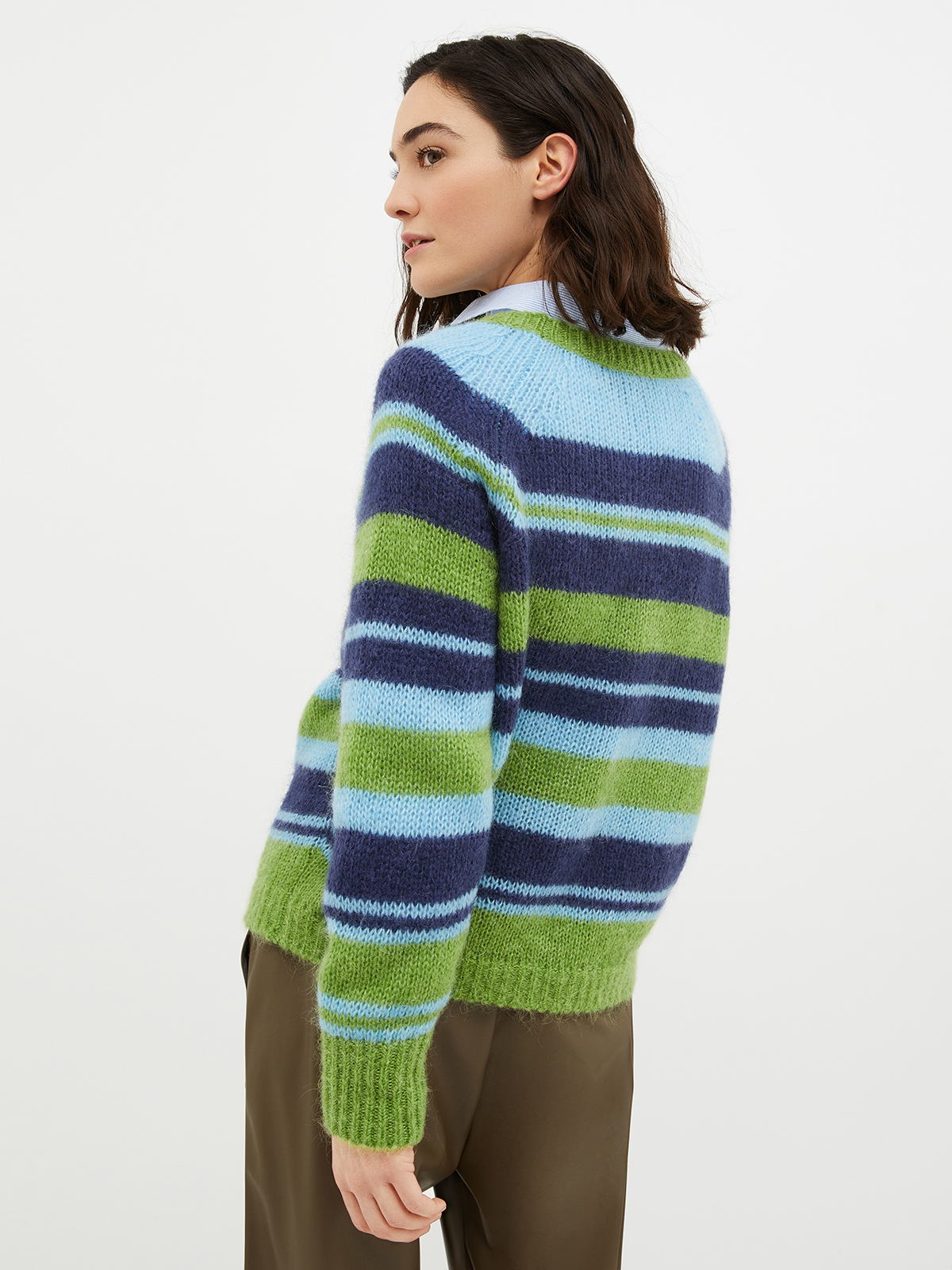 柔らかな印象に仕上げたモヘヤ ブレンドニット。