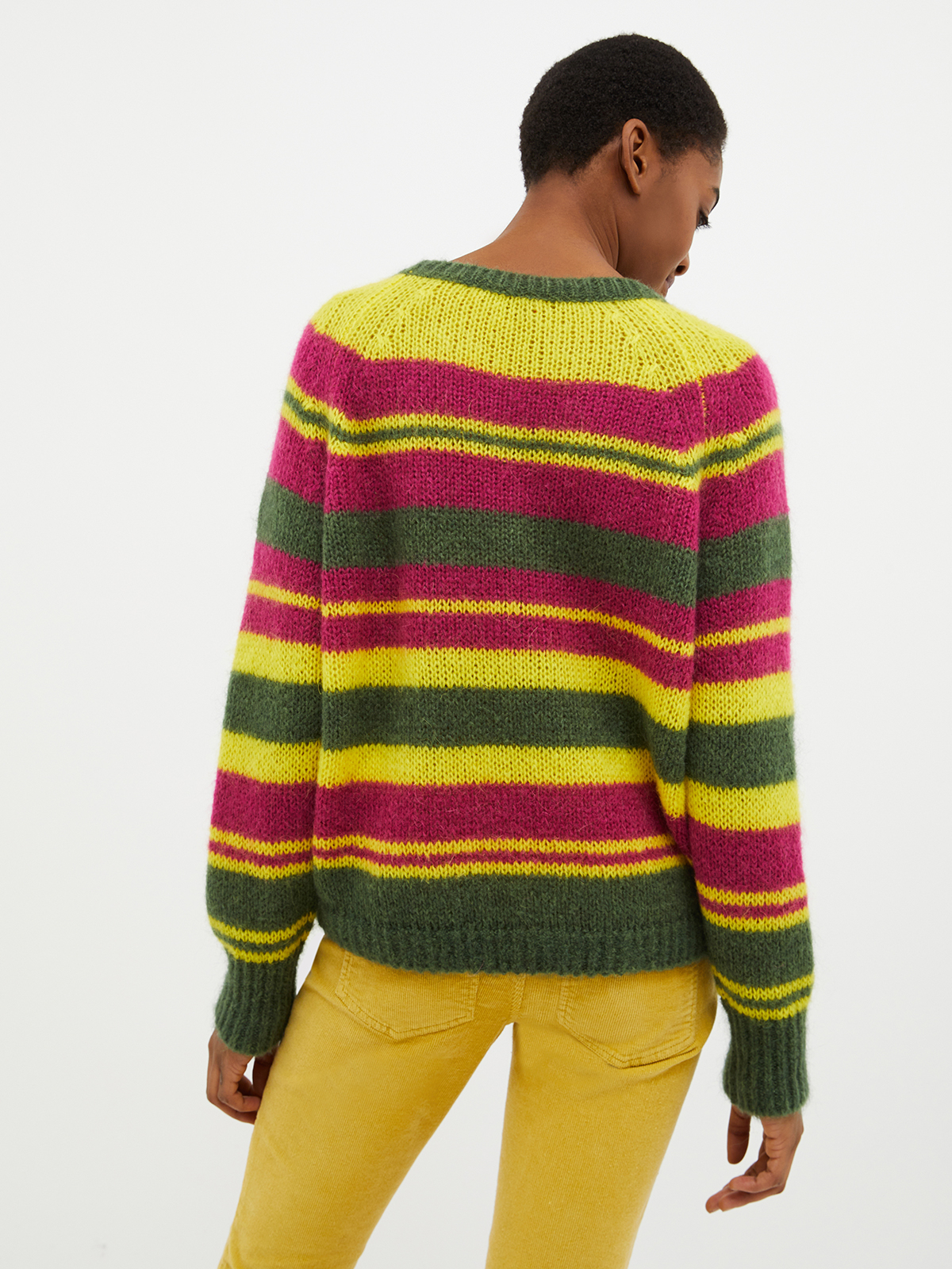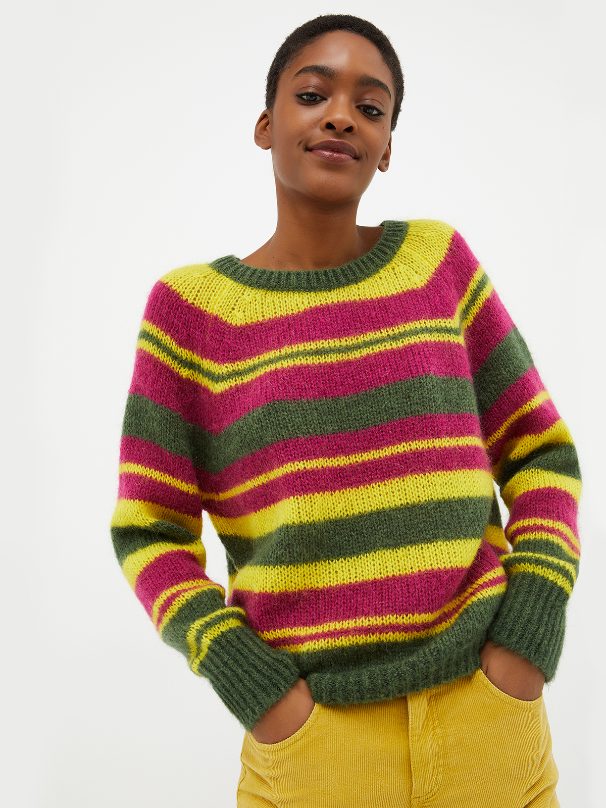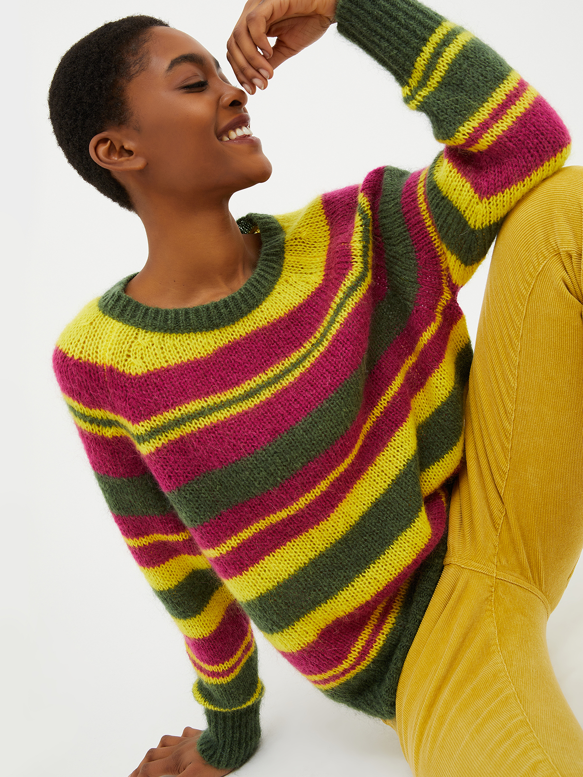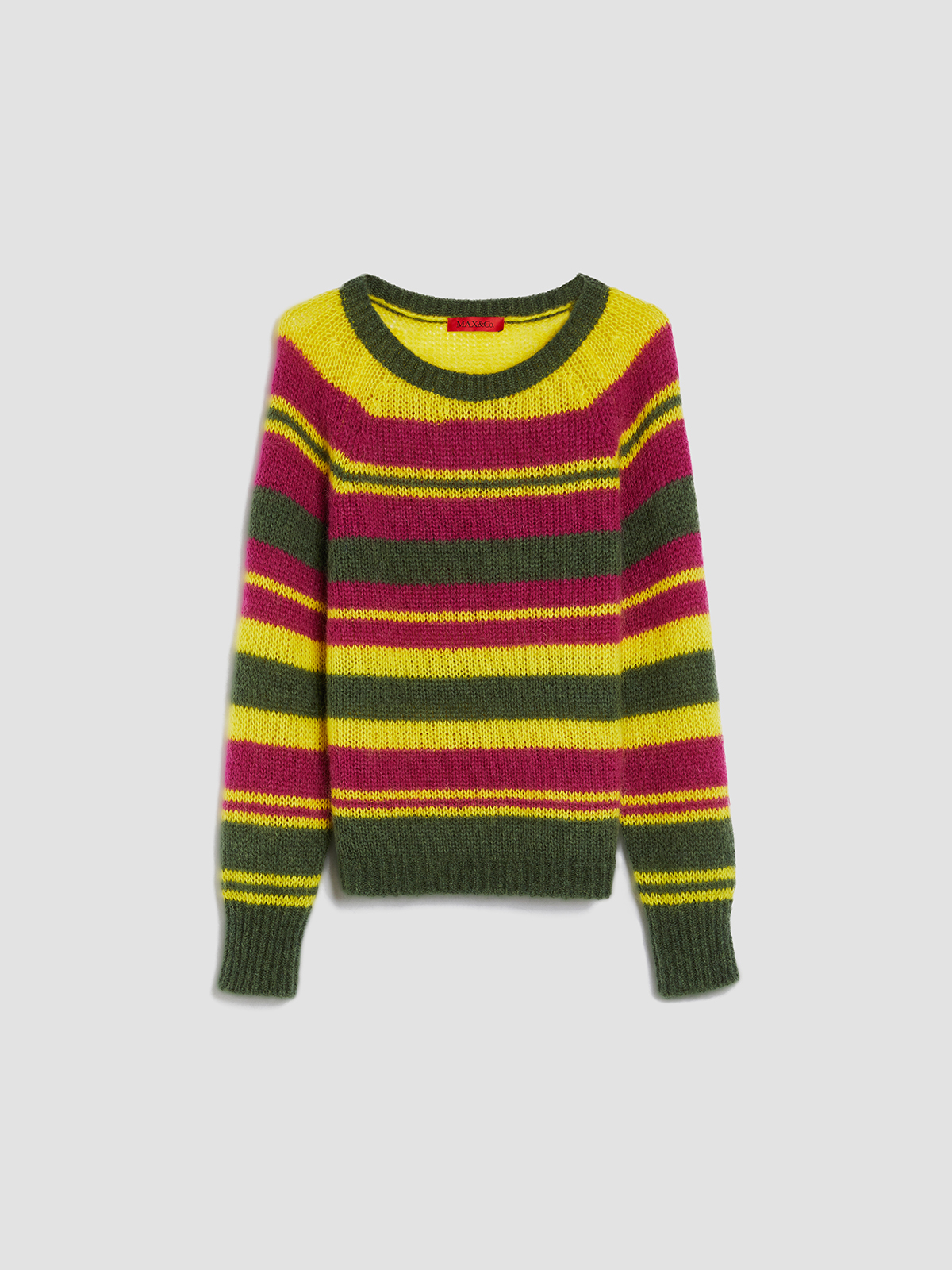 柔らかな印象に仕上げたモヘヤ ブレンドニット。